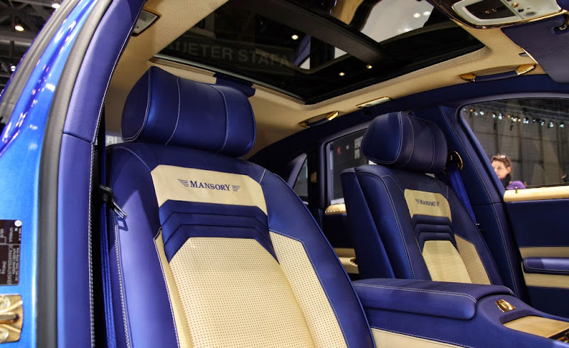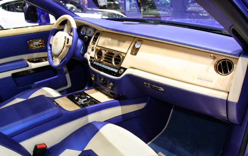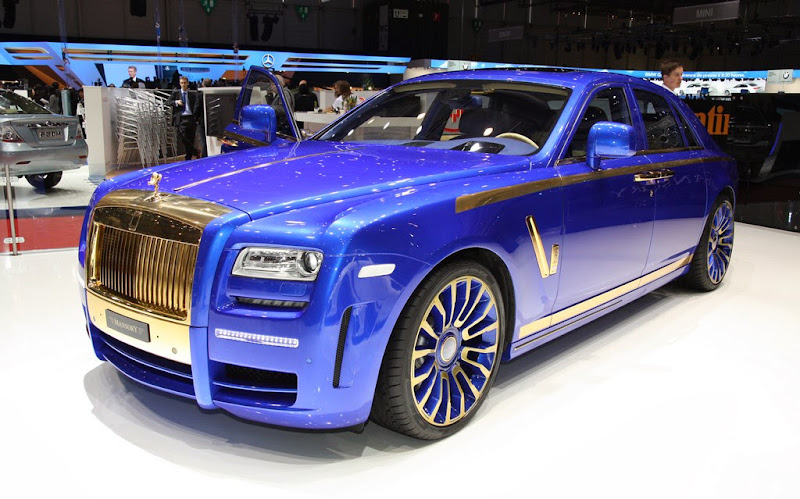 面對Rolls-Royce如此細膩刻劃出的新世代豪華車款,世界上膽敢大刀闊斧施展功力的改裝廠不多,而Mansory便是其中之一。再者,Mansory的動作非常迅速,在2010年的日內瓦車展(Geneva Motor Show)當中便展出改裝完成的Rolls-Royce Ghost,外觀採用亮眼的藍色車身搭配金色電鍍部品,並且更換自行開發的前保桿、後保桿、尾翼與雙色版本輪圈。動力部分,針對Rolls-Royce Ghost所搭載的6.6升V12引擎,Mansory透過電腦程式的改寫,並且更換碳纖維進氣系統與排氣管等部品,將最大馬力從原廠的570HP提升至720HP,狂暴的程度可想而知。