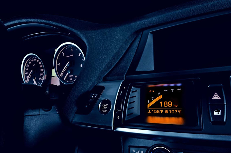 功能方面,Hamann OLED系統能夠顯示水溫、引擎機油溫度、瞬間馬力、扭力與增壓值等,消費者更可以加購連結排氣管的感知器,進而獲得排氣溫度的資訊。另外,愛車的0-100km/hr、0-200km/hr等加速數據也能在Hamann OLED系統中計算。根據自家儀器的測試結果顯示,原廠動力的BMW X6M百里加速成績為4.7秒、在6,000rpm時的最大馬力為555HP、最大扭力於1,500rpm至5,650rpm湧現、斷油轉速為7,000rpm...以上資訊皆與原廠官方所公佈的數據不謀而合,這意味著車主不需要翻開使用手冊或汽車雜誌才能得到愛車的動力數據,尤其對擁有很多台車或是不太熟悉愛車引擎特性的車主們來說,算是相當便利的電子改裝品。