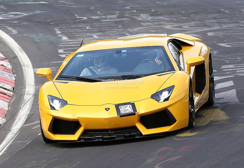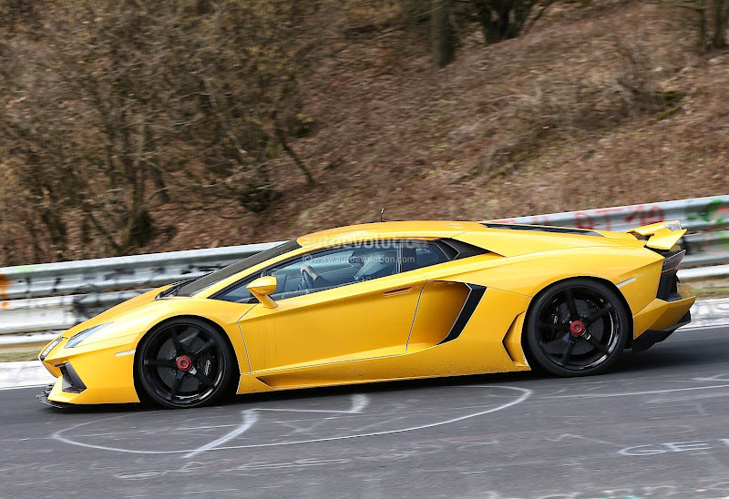 事隔數年後,2011年二月的日內瓦車展(Geneva Motor Show)中,Lamborghini便發表了新世代的V12旗艦超級跑車Aventador,將6.5升V12自然進氣引擎提升到更完美的境界而達到700HP的動力輸出,從百里加速僅需2.9秒、極速上看350km/hr等數據看來,一般道路已難逢敵手。但是,來自義大利(Italy)聖阿加塔博洛涅塞(Sant'Agata Bolognese)的Lamborghini永遠不會停止進化;如今,收到由知名汽車媒體Autoevolution從德國紐柏林(Nurburgring)賽道傳來的照片,乍看之下可能不會發現這部黃色塗裝的Lamborghini Aventador有什麼不同,但仔細端倪後,發現輪圈改為單孔式設計、前保桿氣壩與下巴周邊有所變動,而尾翼中間下方多了一塊金屬製部品,推測這極可能是測試中的進階版本Aventador。另外,根據可靠消息指出,Lamborghini Aventador SV即將於2015年推出的消息,由於目前為止尚未公布相關細節,所以姑且先以SV ( Super Veloce )命名,馬力也必定會大於700HP,所以無法冠上LP700-4的型號,無論如何,接下來會代表Lamborhgini登場的V12旗艦,想必會是驚滔駭浪、氣勢震天!
