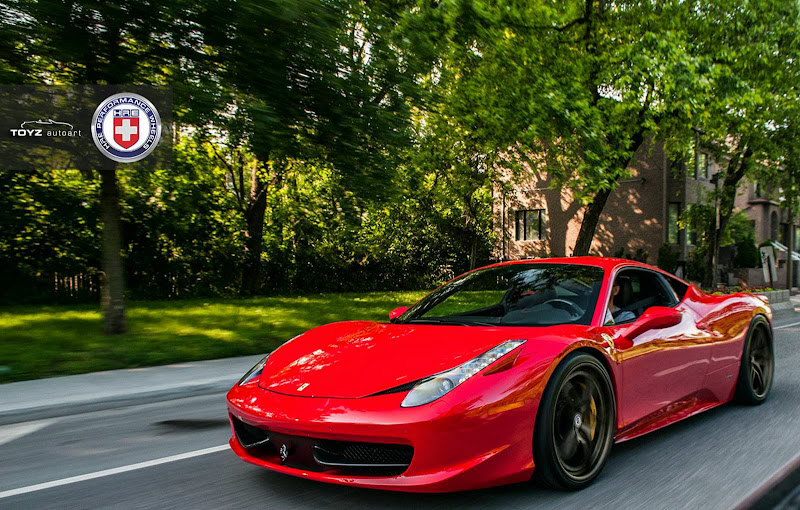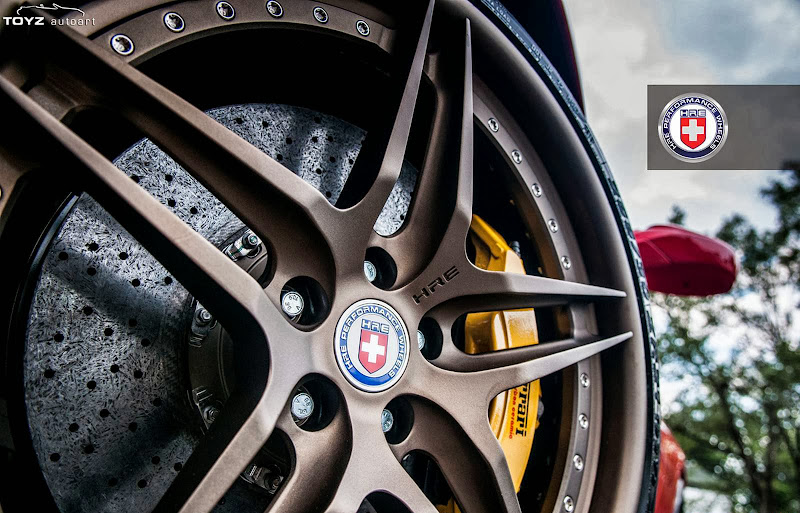另外一部Rosso Scuderia紅色塗裝的Ferrari 458 Italia則是選用同樣HRE Performance Wheels出品、型號為S107的最新款式輪圈,尺寸為前21吋、後22吋的配置,另外換裝避震器名廠KW為Novitec代工的短彈簧將車身降低,圈面採用消光銅色處理,與紅色車身相配,呈現出獨特的俐落風格。