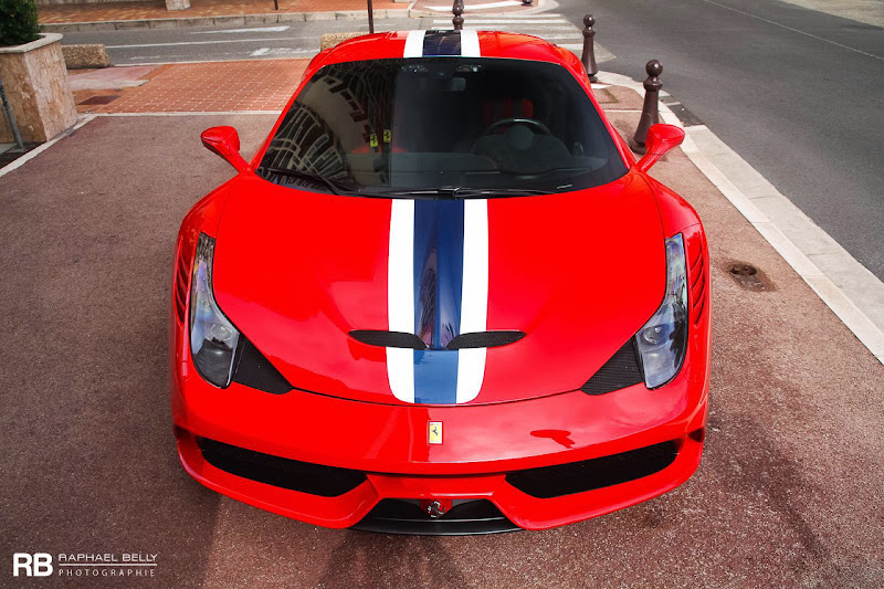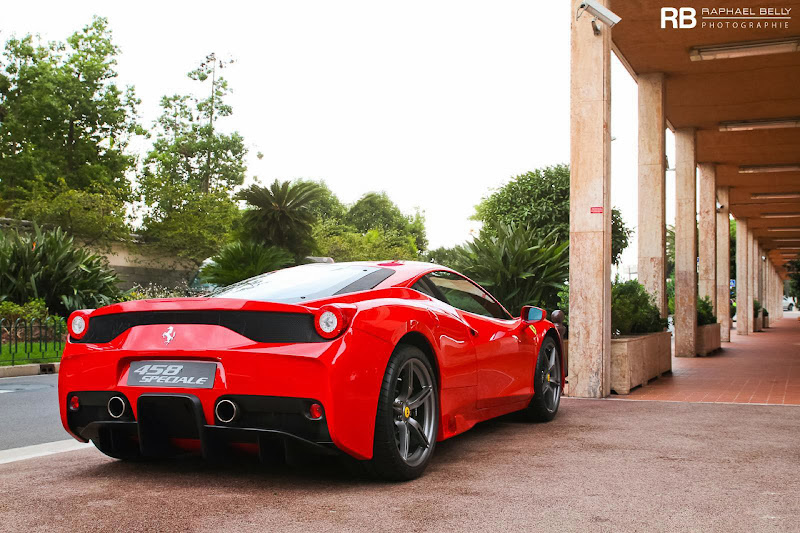 說時遲、那時快,攝影團隊Raphael Belly Photography已經在摩洛哥(Monaco)街頭擄獲Ferrari 458 Speciale的身影,推測應該是當地代理商的試乘車,而不知道眼尖的讀者有沒有發現,在透明引擎蓋下面的鋁製銘板上,竟然將Speciale拼成Special(少了英文字母e),與先前"Lamborginih" Egoista事件有點異曲同工,是不是一種另類行銷呢?