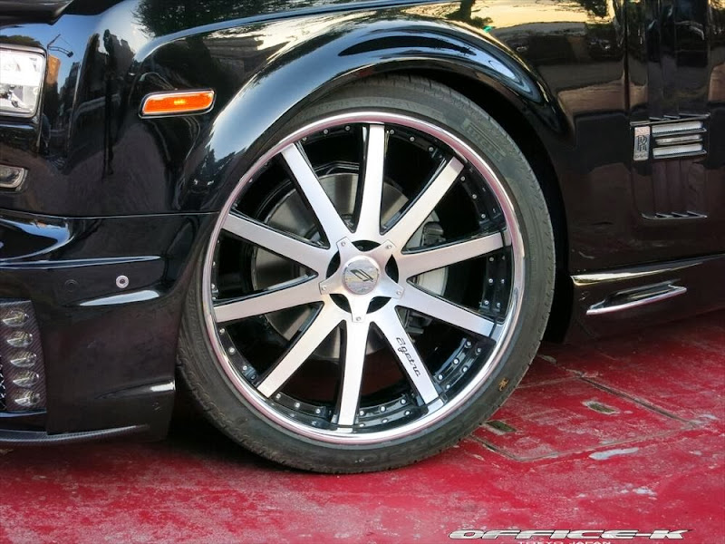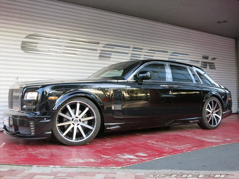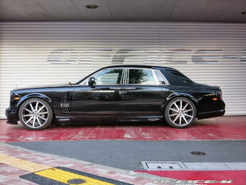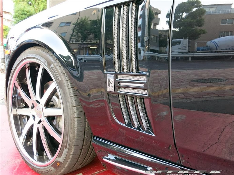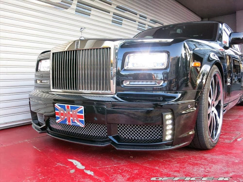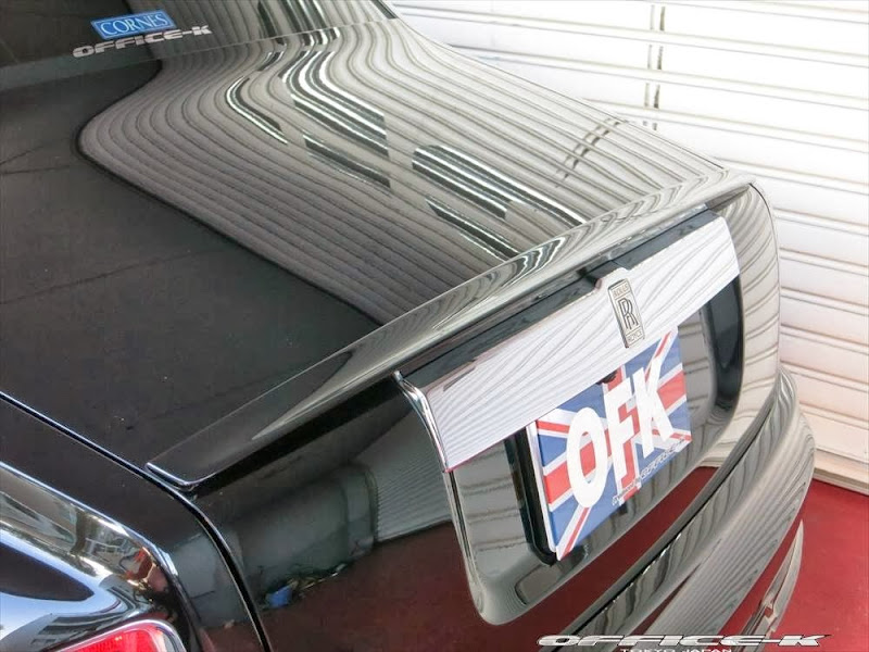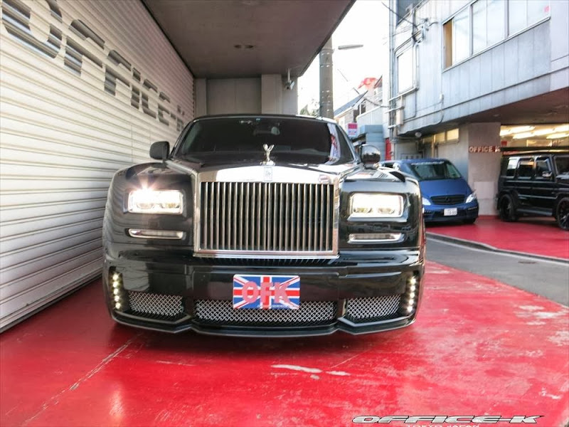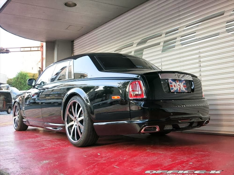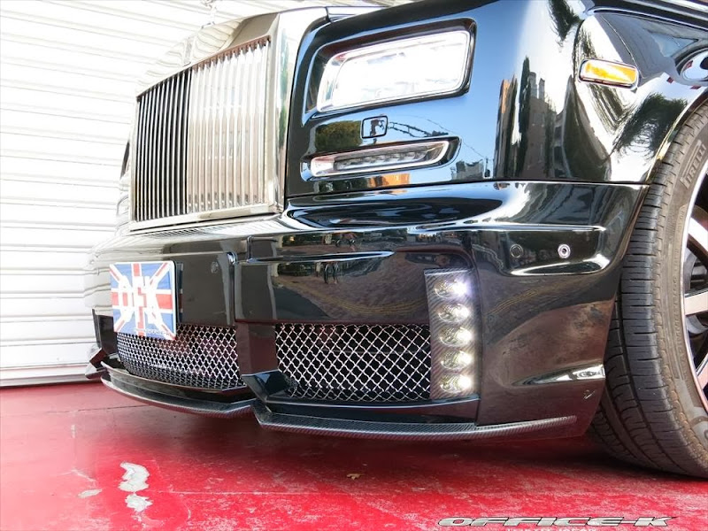 以上所述可能對日本改裝名廠Office-K沒有那麼重要,他們的注意力是放在買完Rolls-Royce Phantom Series II後的事情,也就是改裝!首先,Office-K找來同鄉品牌Wald International,將其所設計的空力套件裝上身,包含獨特設計的前保桿、LED日行燈與車頭電鍍裝飾套件等,車尾部分則是以專屬後保桿與後下擾流板包覆無實際功能的排氣管尾飾管,相當醒目出眾。輪圈方面,Office-K選用Agetro出品的24吋款式,採用電鍍與黑色的雙色搭配,另外換裝高低可調避震器組將車身降低,讓Rolls-Royce Phantom Series II呈現出少見的運動風格。