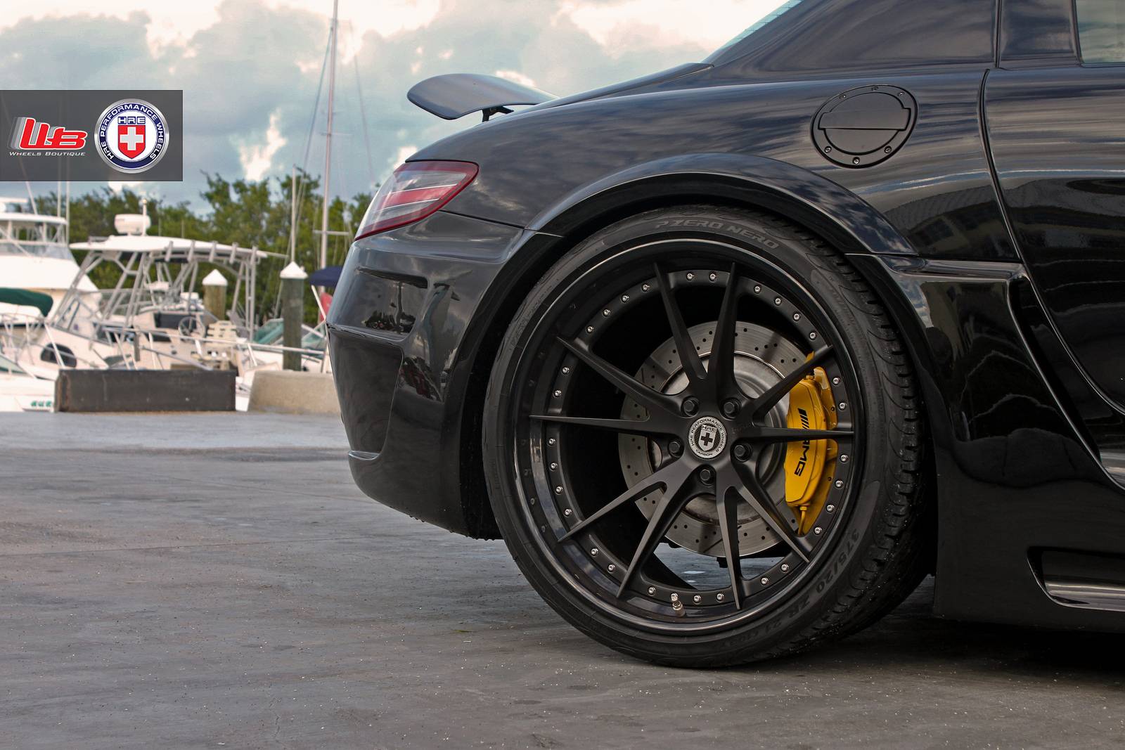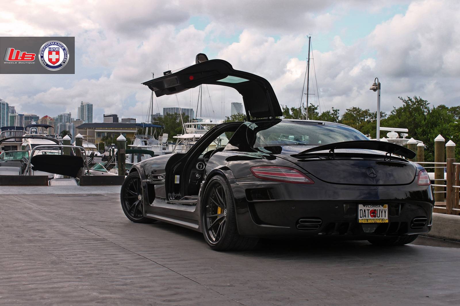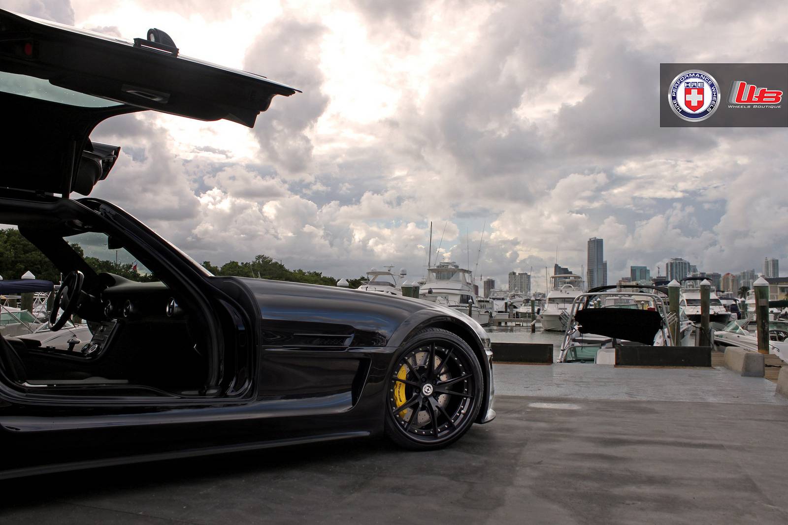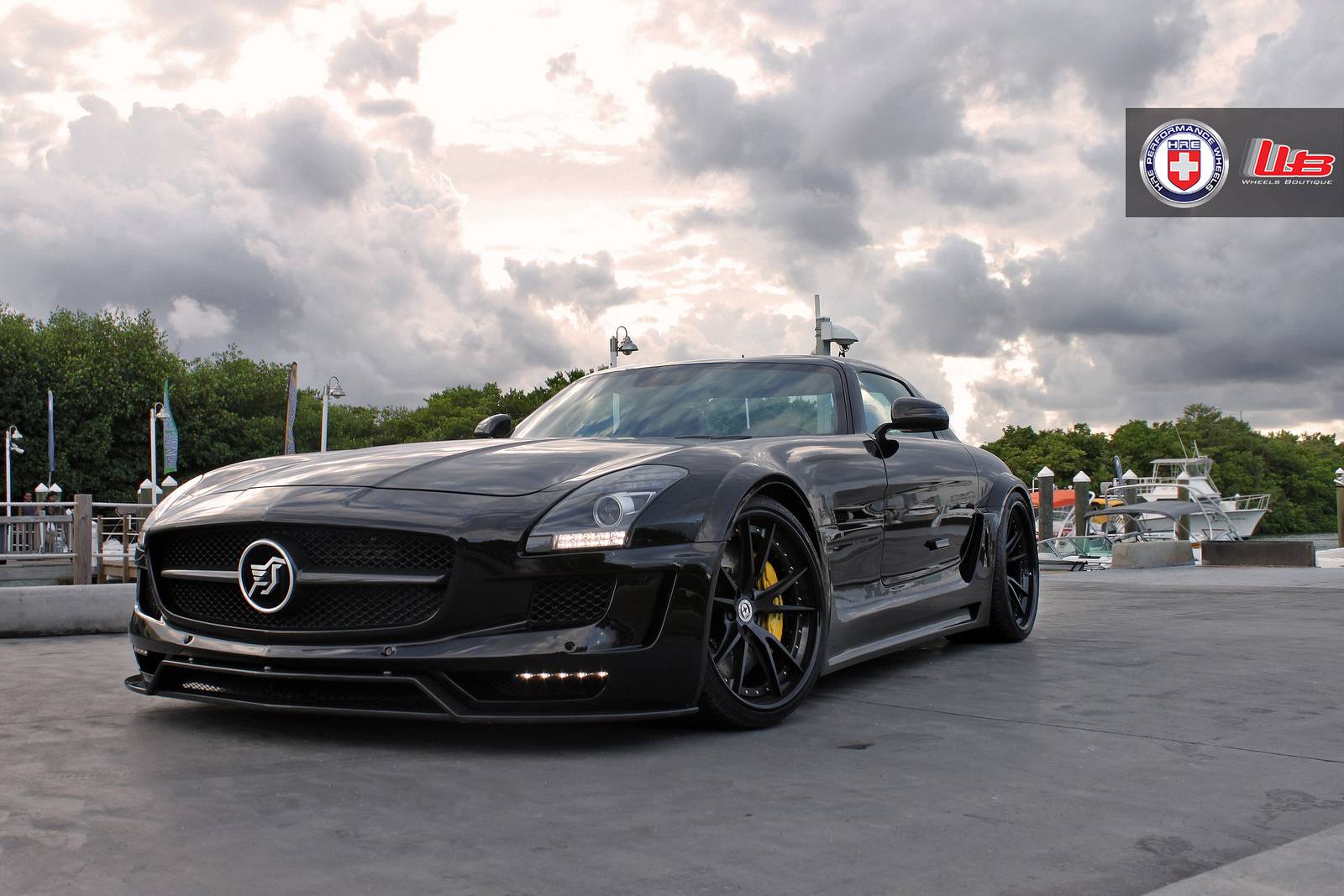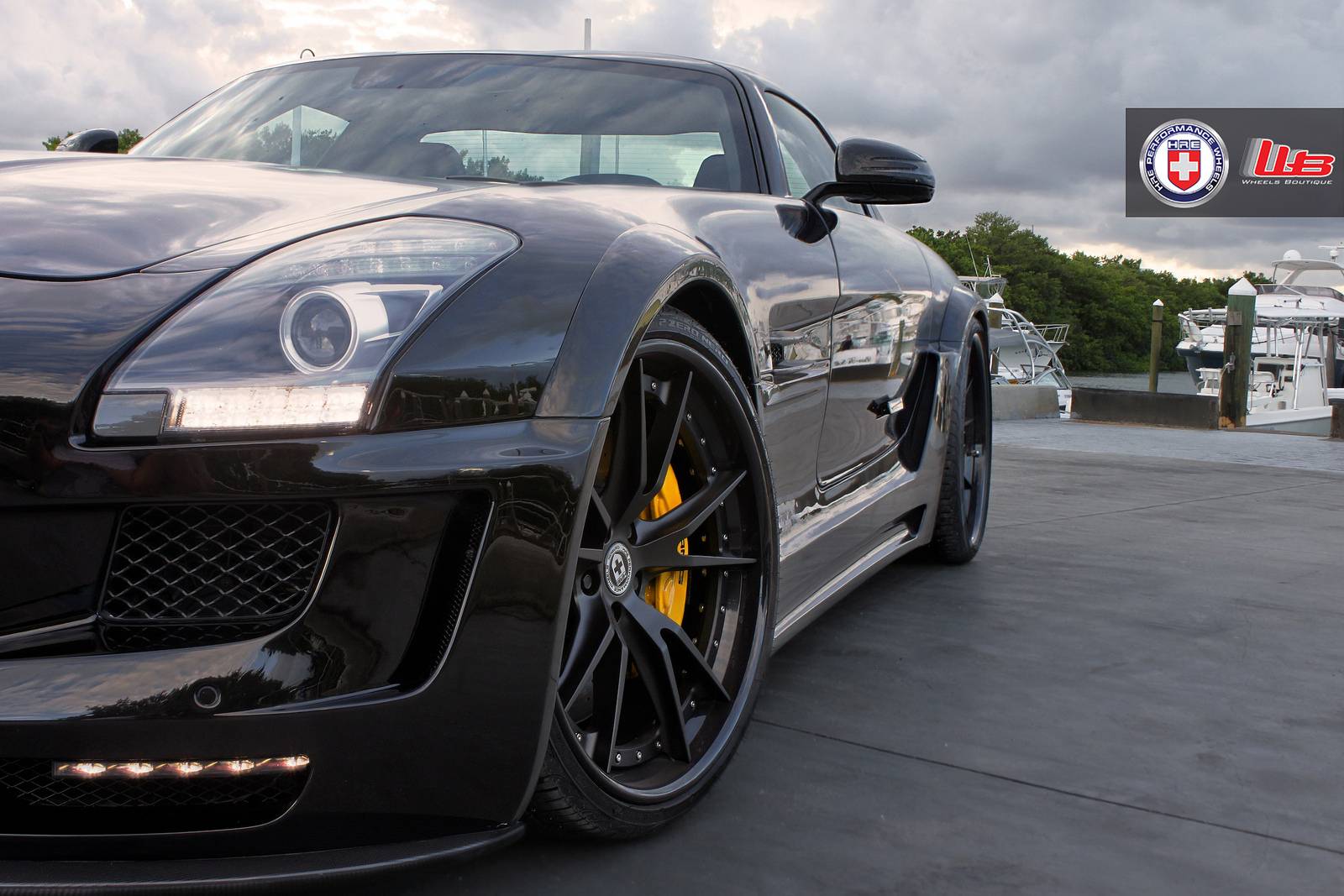 有鑑於此,大部分專精於BMW車系、鮮少觸碰Mercedes Benz車款的改裝名廠Hamann不可能錯過這部經典超級跑車,為SLS AMG量身訂做了專屬的空力套件,包含前保桿套件、側裙組與後下擾流板等部品,營造出別於AMG風格的視覺效果,Hamann完整改裝式樣則取名Hamann Hawk。另外,眼前這部黑色塗裝的Hamann Hawk選用知名品牌HRE Performance Wheels出品、型號S104的黑色塗裝輪圈,並且更換高低、軟硬可調避震器將車身降低,質感出眾;順帶一提,Mercedes Benz SLS AMG選用黑色車身,100%美翻!