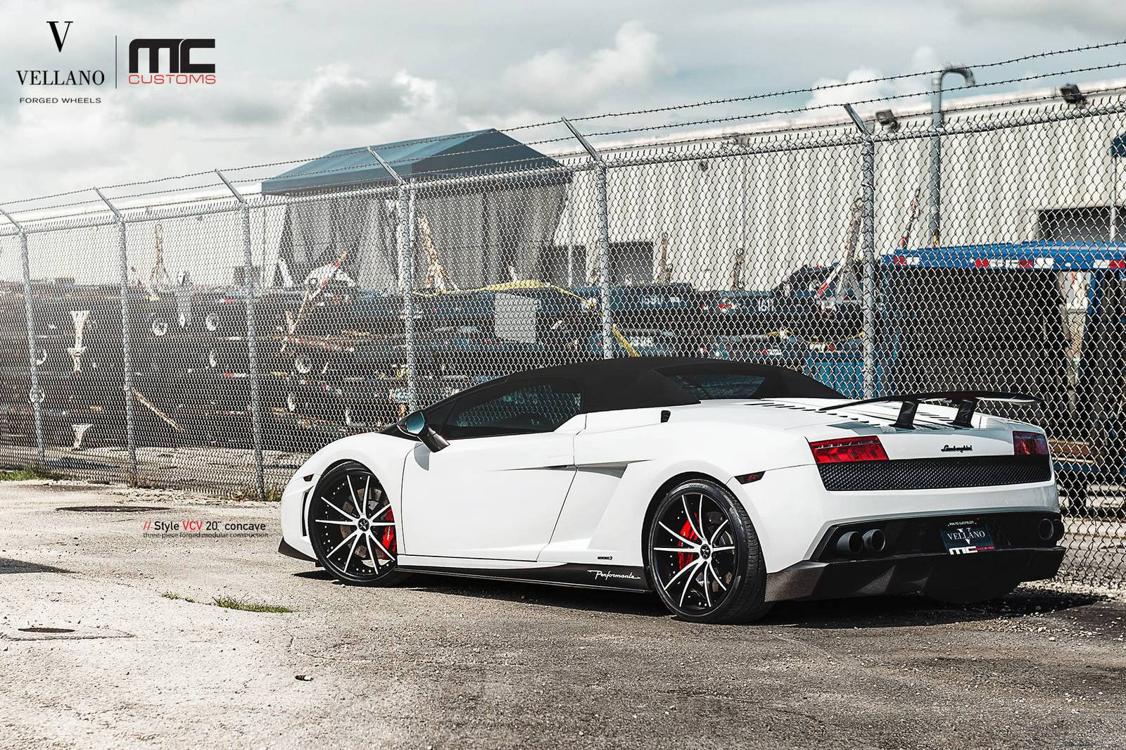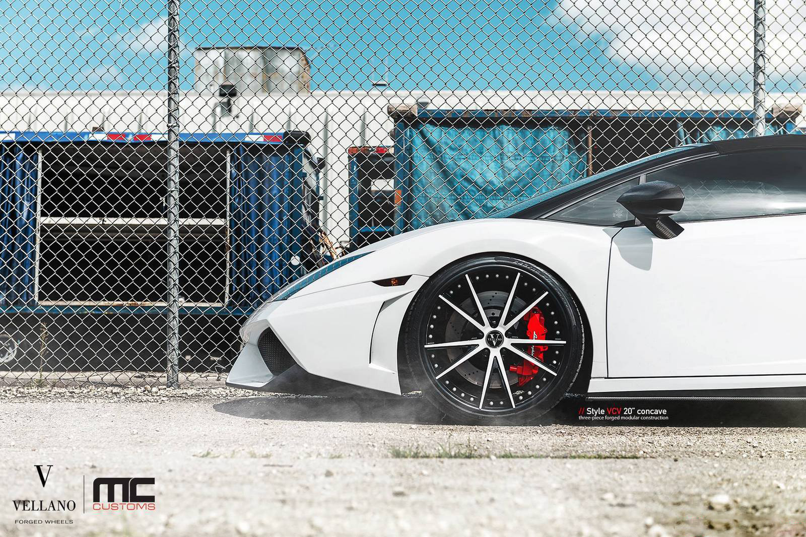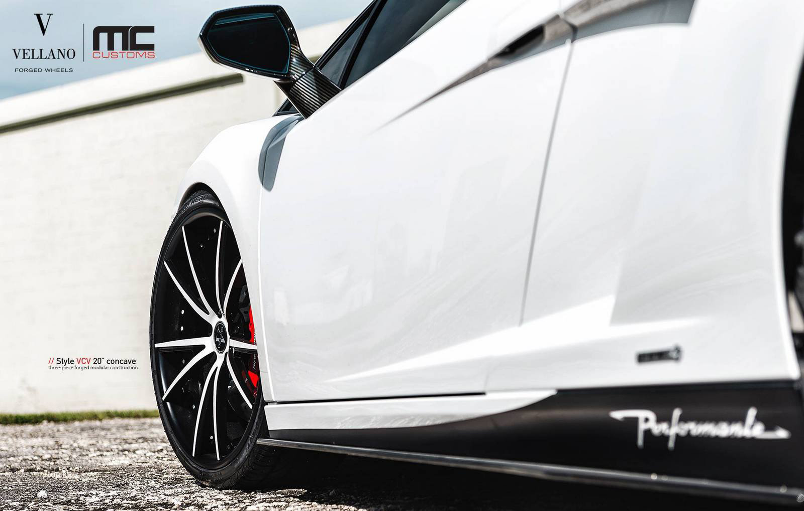 今天帶給各位的便是這部白色塗裝的Lamborghini Gallardo LP570-4 Spyder Performante,原廠便配有碳纖維側裙組、後下擾流板與專屬尾翼等部品,而車主找上知名改裝廠MC Customs、換裝Vellano Wheels出品、型號VCV的20吋輪圈,並且選用KW V3高低、軟硬可調避震器組將車身降低,營造出濃烈的貼地飛行氛圍。