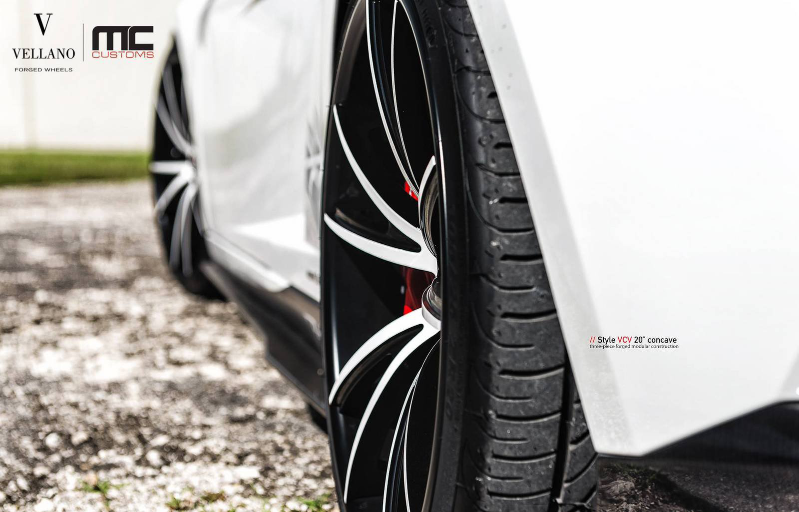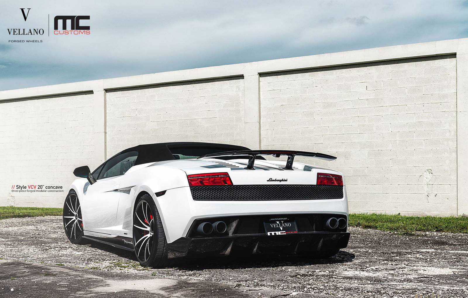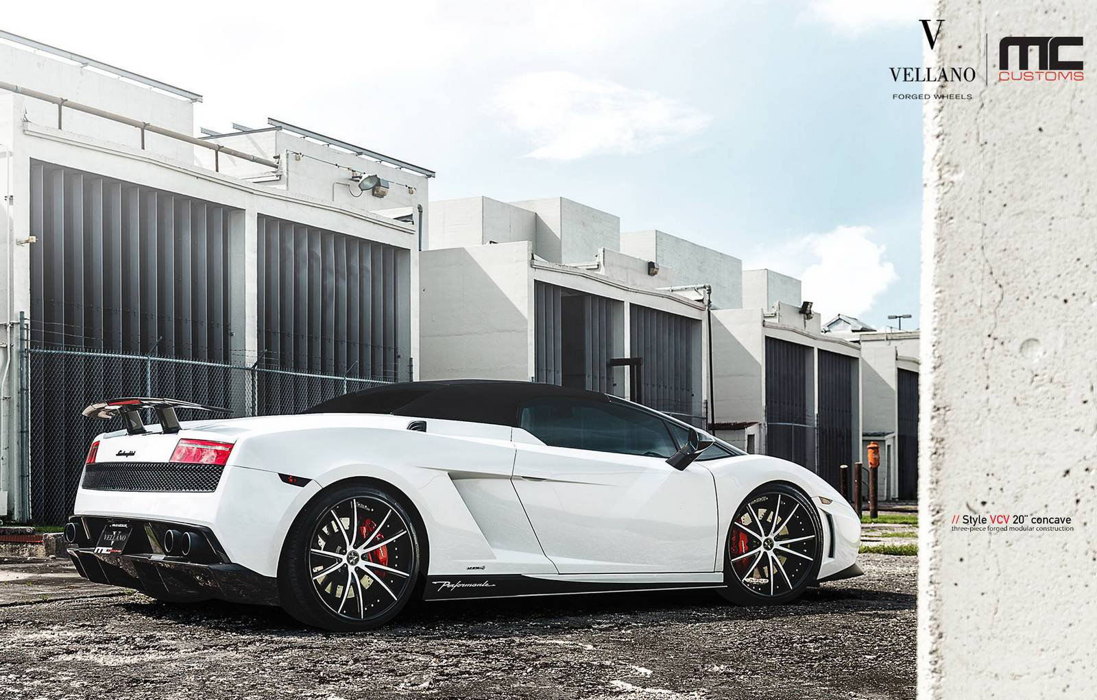 今天帶給各位的便是這部白色塗裝的Lamborghini Gallardo LP570-4 Spyder Performante,原廠便配有碳纖維側裙組、後下擾流板與專屬尾翼等部品,而車主找上知名改裝廠MC Customs、換裝Vellano Wheels出品、型號VCV的20吋輪圈,並且選用KW V3高低、軟硬可調避震器組將車身降低,營造出濃烈的貼地飛行氛圍。