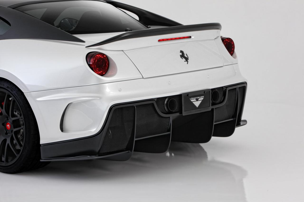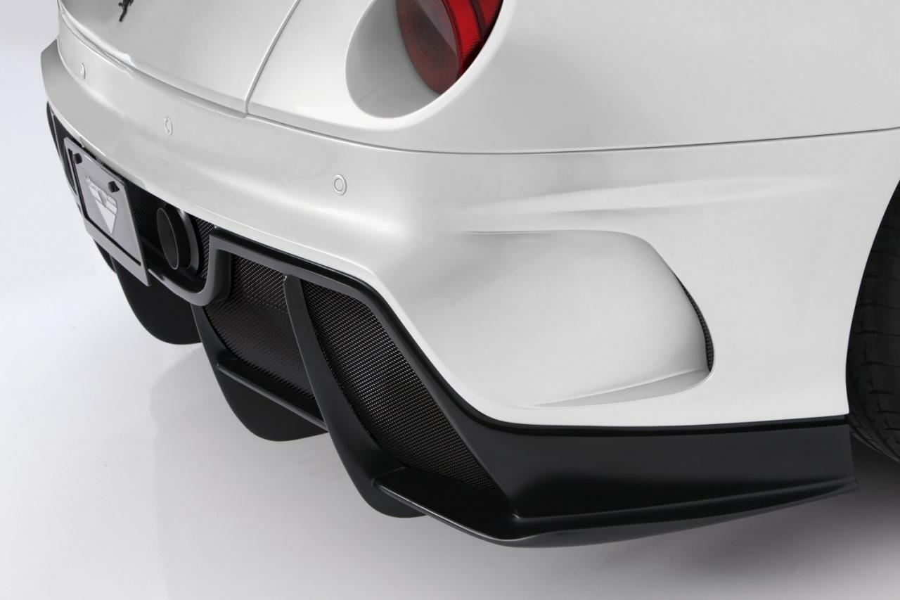 車尾應該是Ferrari 599VX較為奔放的部分,後保桿整支更換為類似599XX造型的版本並且將排氣管尾段改為近中央位置的雙邊單管設計,而造型獨特的碳纖維後下擾流板則是車尾的目光焦點之一,營造出狀似599XX卻又非常有質感的視覺效果,設計功力相當了得。