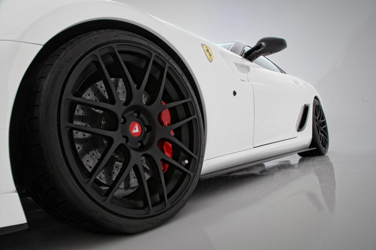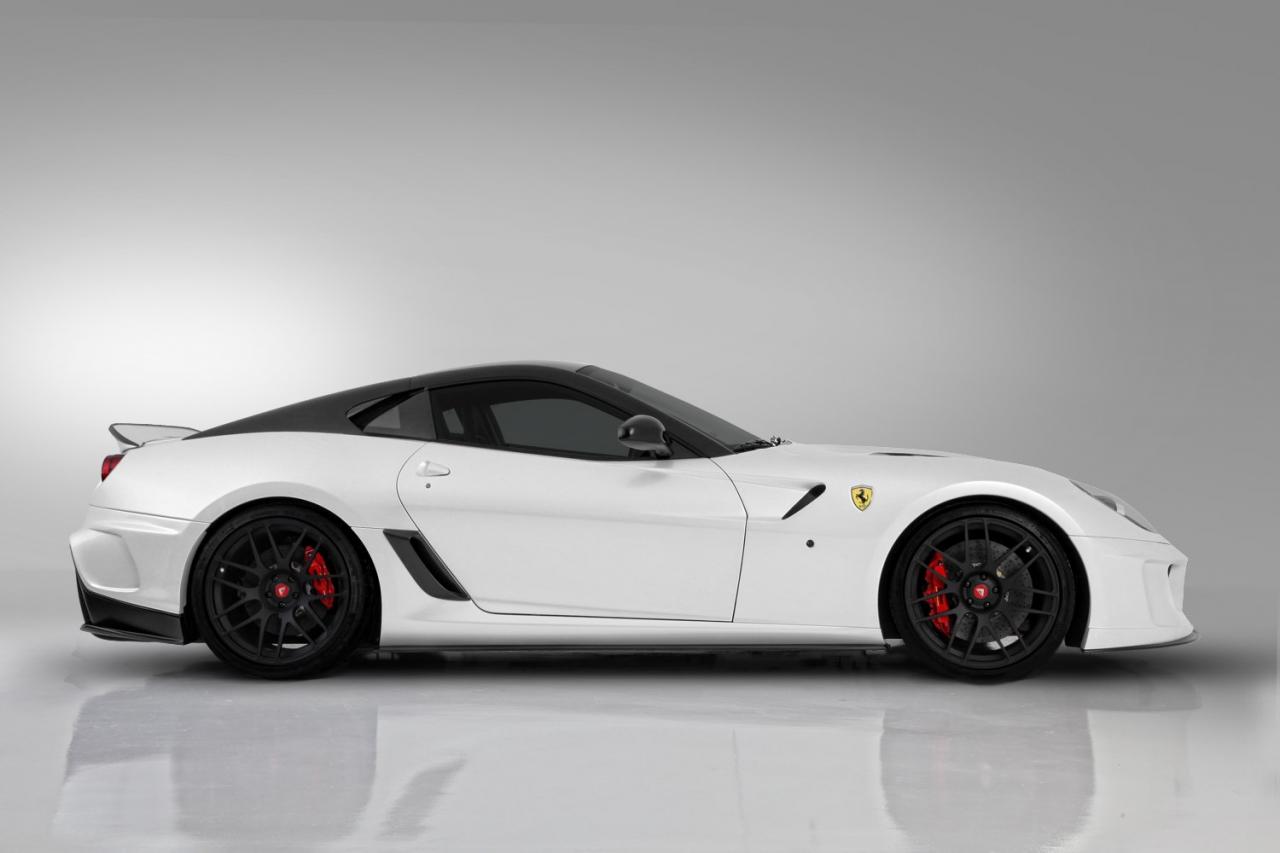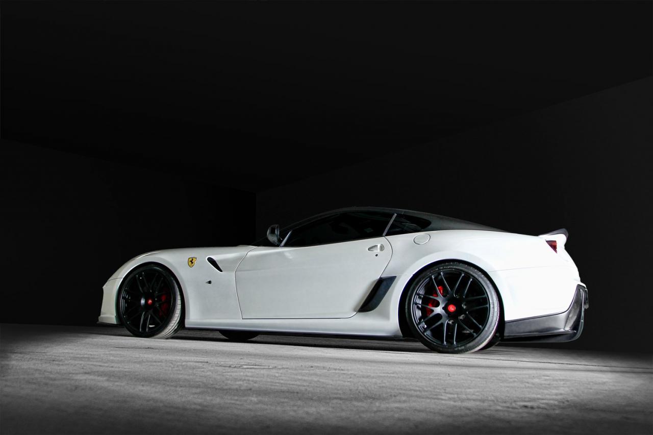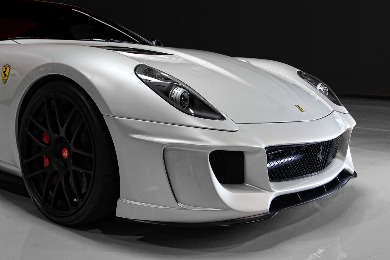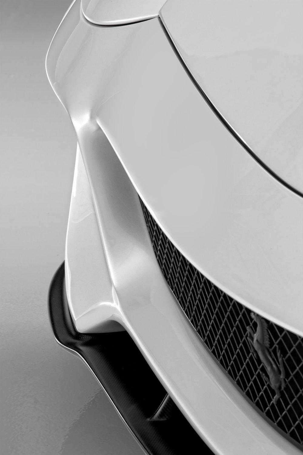 車頭部分,Vorsteiner為Ferrari 599 GTB加裝了碳纖維前下巴,引擎蓋部分則是更換為碳纖維材質的開孔式樣版本,而其進氣口部分的設計相當具有巧思。另外,Vorsteiner將原廠側裙移除,裝上全新設計的碳纖維材質側裙,成功雕塑出Ferrari 599較不耀眼的腰身。