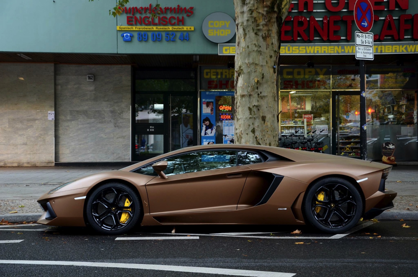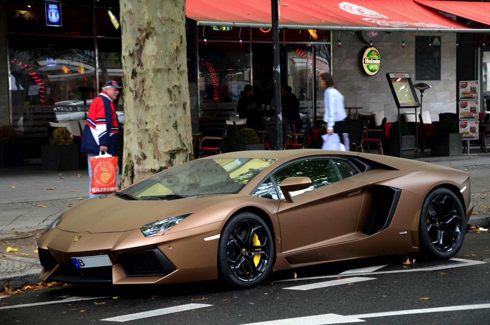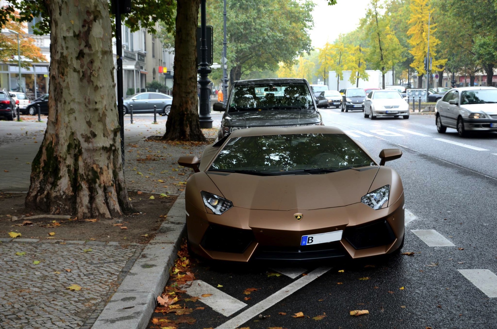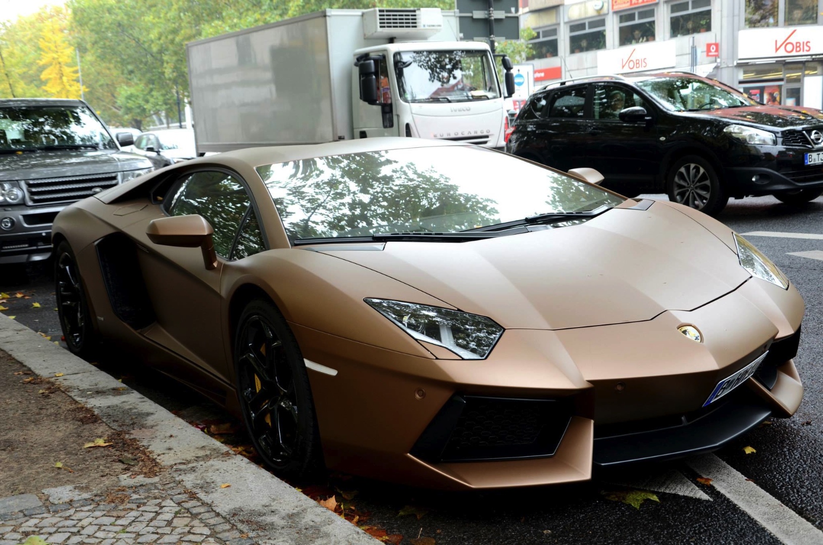 外觀方面,見過Lamborghini Aventador LP700-4的朋友們想必印象深刻,那張力十足的銳利線條讓人過目難忘,面對這麼一部內外兼備的超級跑車,我們還有什麼好挑的? 一位3C迷可能會因為iPhone 5S的現貨沒有金色而暫時不買,但是想買Lamborghini Aventador LP700-4的朋友們有時就別猶豫了,除非你可以等上好幾個月。眼前這部於德國(Germany)市區街道違規停車的Lamborghini Aventador LP700-4便是由一位追求獨特品味的車主所擁有,據說他要購買的時候,最快交車的是他認為較為黯淡的鐵灰色,然而深知顏色因素已經無法左右他想購買的決定,於是沒多久就將鐵灰色的Aventador領回家停放,開了一陣子也沒有對顏色太在意。事隔數月,經營巧克力品牌的他靈機一動,將這部義大利超級跑車包成消光咖啡色,瞇著眼看就像小時候他吃過的跑車造型巧克力,讓他十分滿意,也多了些連結回憶的視覺意境。至於好不好看等主觀議題,他已拋諸腦後。