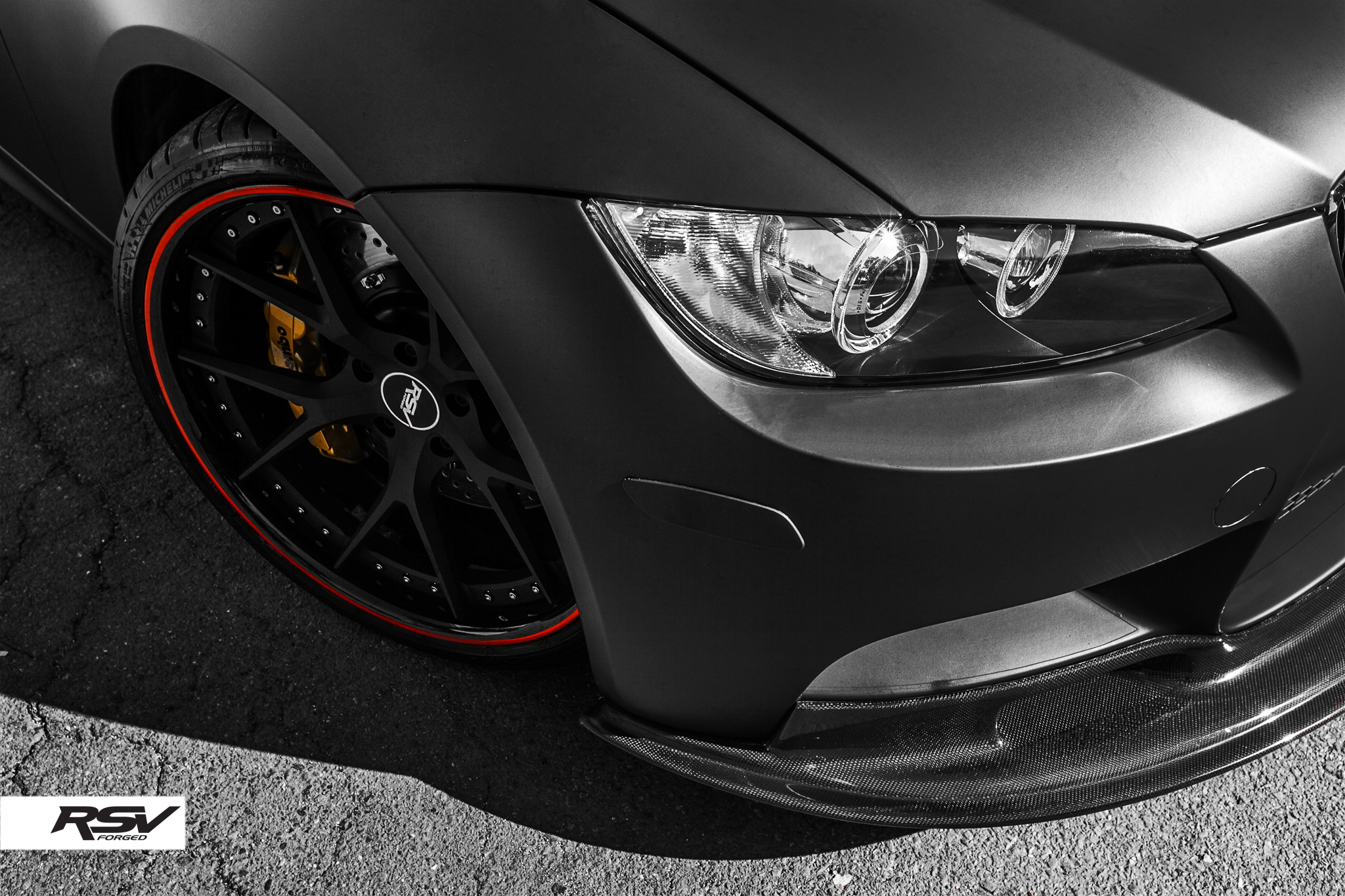 不過,今天要為各位介紹的並不是一部E92 M3 GTS,而是眼前這部妝點得非常特殊的BMW E92 M3,使用外圍施以紅色滾邊、鍛造製成的RSV MSF1輪圈,配合黃色塗裝的Brembo GT煞車卡鉗,另外透過換裝KW V3高低軟硬可調避震器將車身降低,烘托出碳纖維前下巴與後尾翼的高階質感。感謝攝影專家Richard Le提供這些精美照片,願BMW E92 M3常駐熱血車迷們的心中!