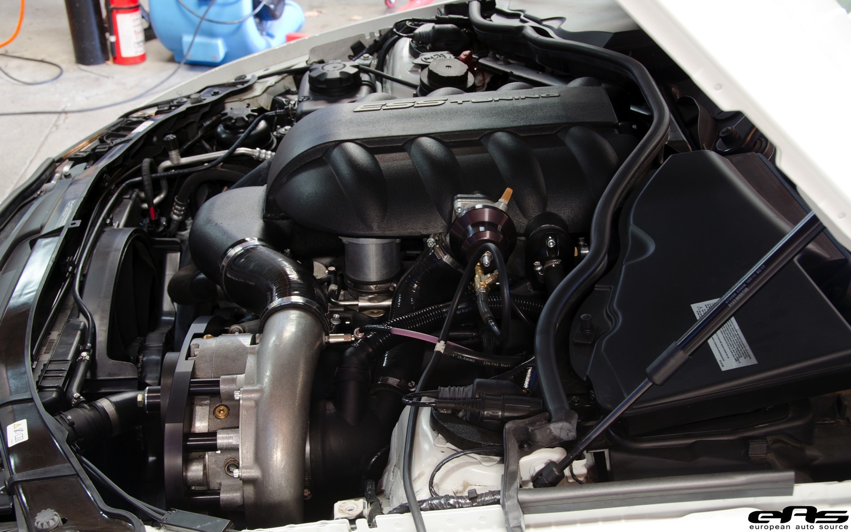 面對這部里程數僅數百公里的2013年款式BMW E92 M3,改裝店家European Auto Source選擇植入知名改裝品牌ESS、型號VT2-625的機械增壓套件,另外加裝酒精噴射系統、重新改寫之電腦程式、Gruppe M碳纖維進氣系統與Akrapovic Evolution鈦合金排氣管等部品,一舉將最大馬力從原廠的420HP提升至560HP,與搭載4.4升V8渦輪增壓引擎的老大哥F10 M5相當。底盤方面,喜好彎道操駕的車主也選用KW V3高低軟硬可調避震器與StopTech煞車系統,將操控性與制動性同時提升,聲勢方面請詳見以下影片!