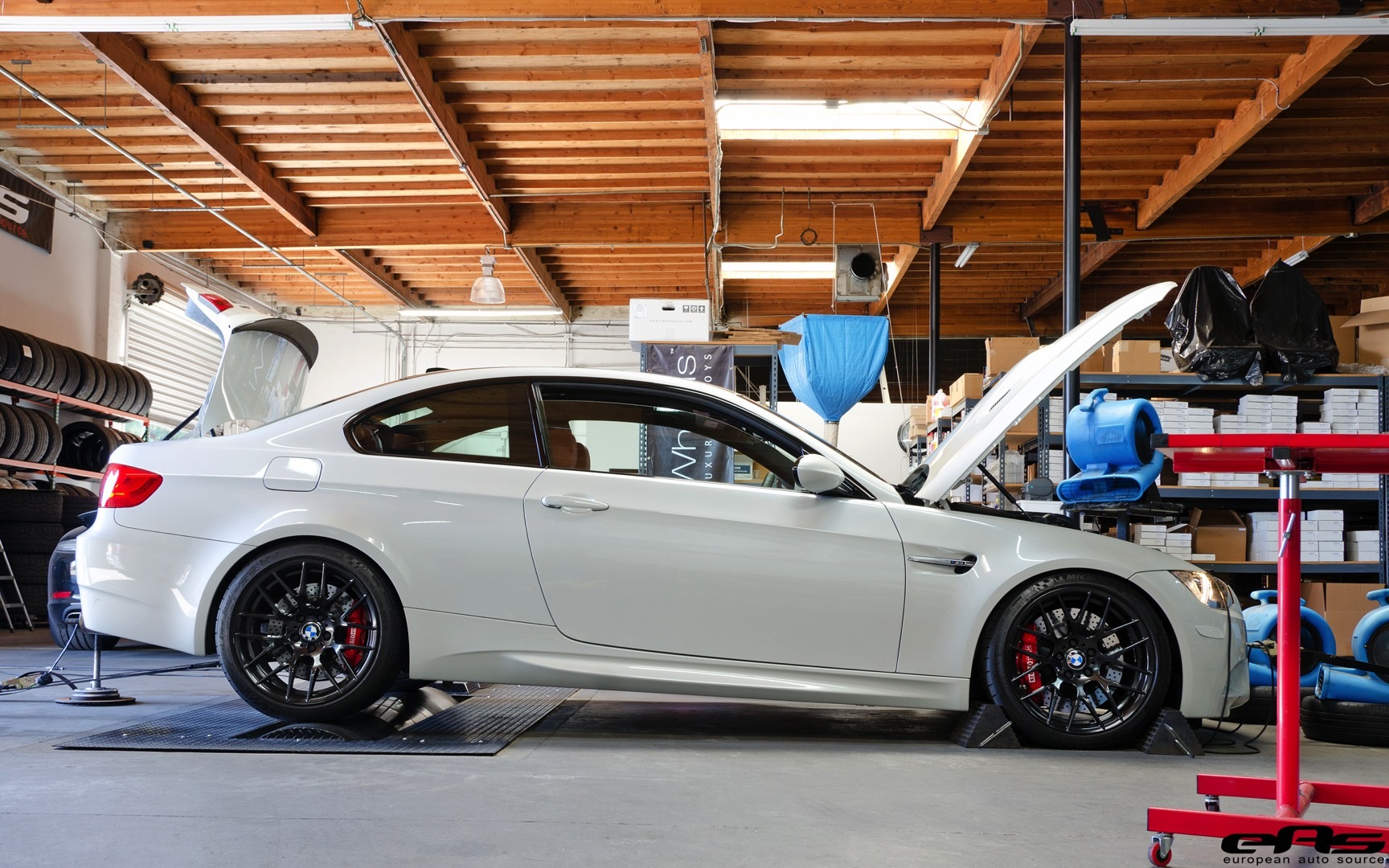 今天帶給各位的這部白色塗裝BMW E92 M3也不例外,這位車主在得知新款M3與M4將使用渦輪增壓引擎後,依舊向當地BMW經銷商訂購2013年最末批生產的BMW E92 M3,而根據他的說法,他認為大排氣量與機械增壓器乃絕配,新款所使用的較小排氣量配上渦輪增壓不見得會有優勢,而在這部E92 M3送入改裝廠European Auto Source的同時,他便又向經銷商訂購一部F82 335i雙門跑車,對BMW車輛的熱情溢於言表。
