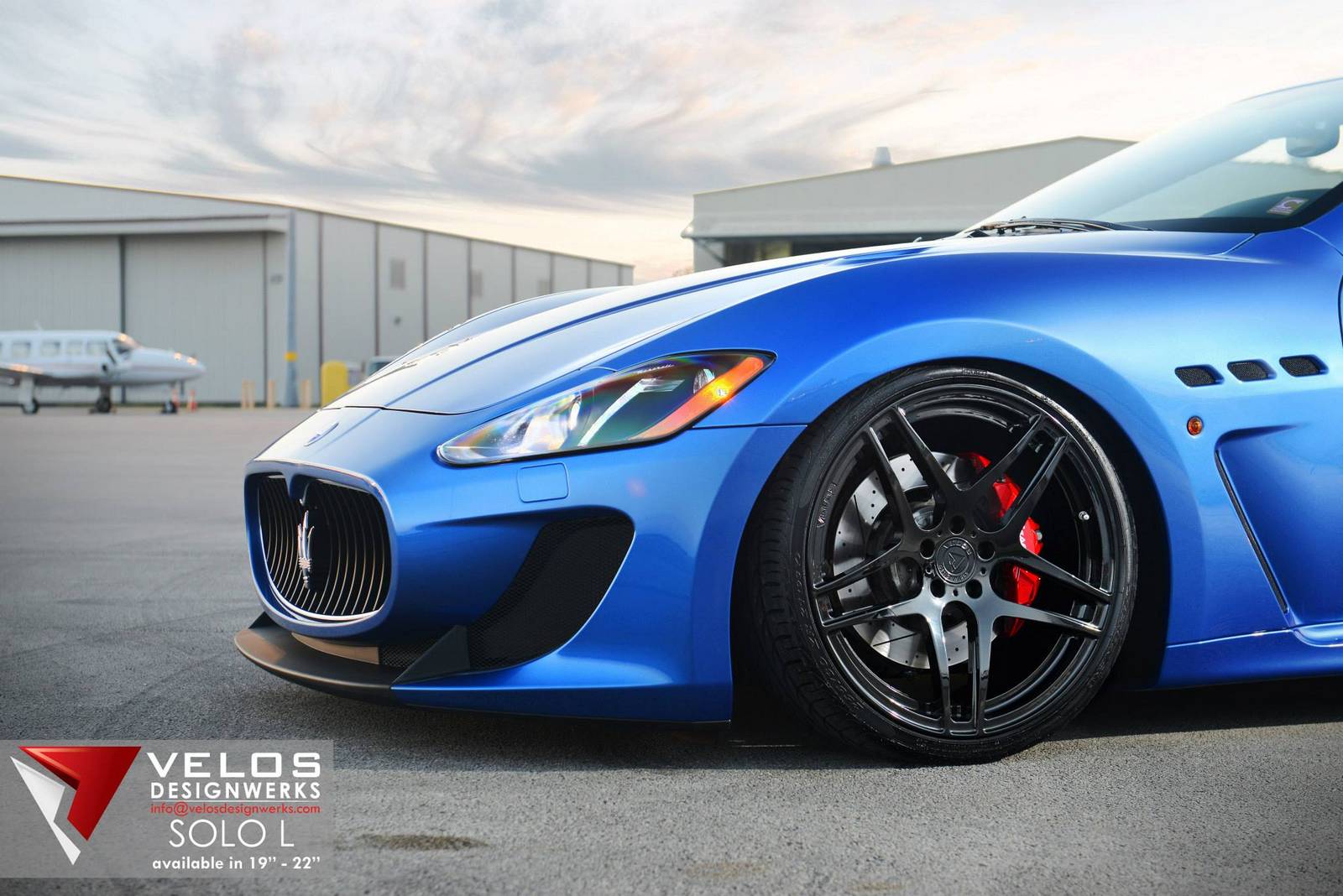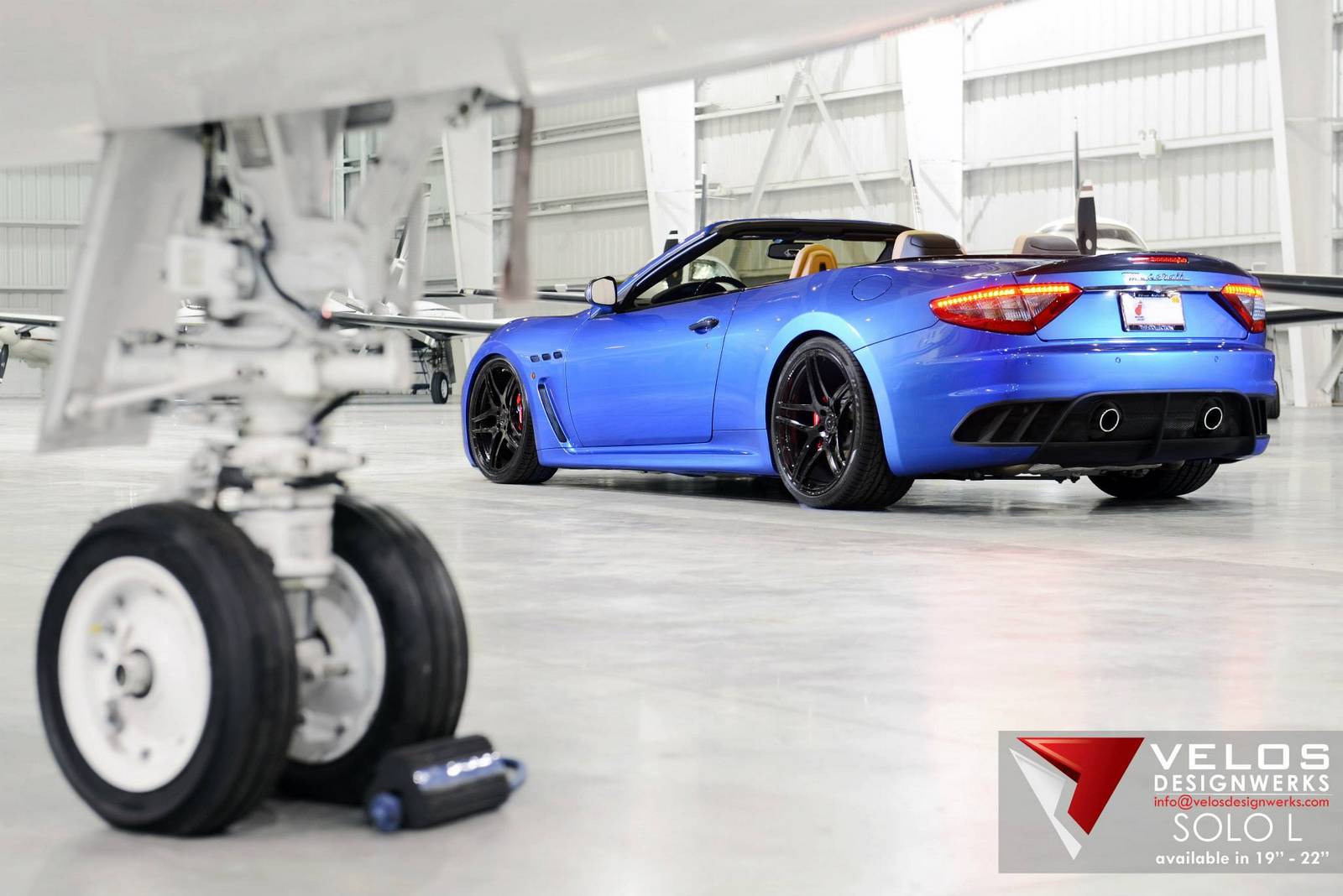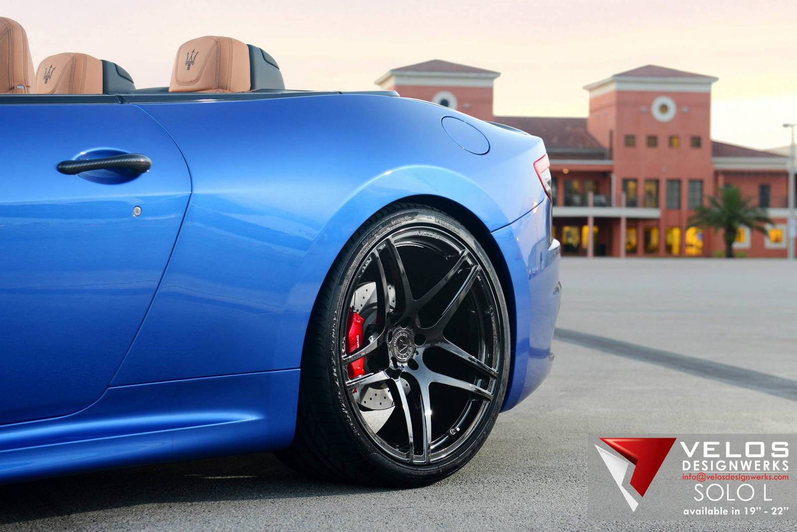 除此之外,如果你是那種買東西一定要選最高等級的、買次等級的會很難熬的人,那麼選擇目前Maserati旗下最貴量產車的Maserati GranCabrio MC就對了,也請記得把選配表填滿。但是,即便是配備全滿的Maserati GranCabrio MC,對於Velos Designwerks依舊稍嫌不足。因此,Velos Designwerks為這部藍色塗裝的GranCabrio MC準備了專用的Solo L款式輪圈,圈面採用黑色塗裝,與藍色車身、黑色頂篷形成優雅的對比,另外透過高低軟硬可調避震器組,將車身降低,營造出貼地飛行的視覺感受。 Velos Designwerks所設計的Solo L款式輪圈提供19吋至22吋的規格,並且分為鑄造與鍛造兩種版本,有興趣的Maserati車主們不妨參考。