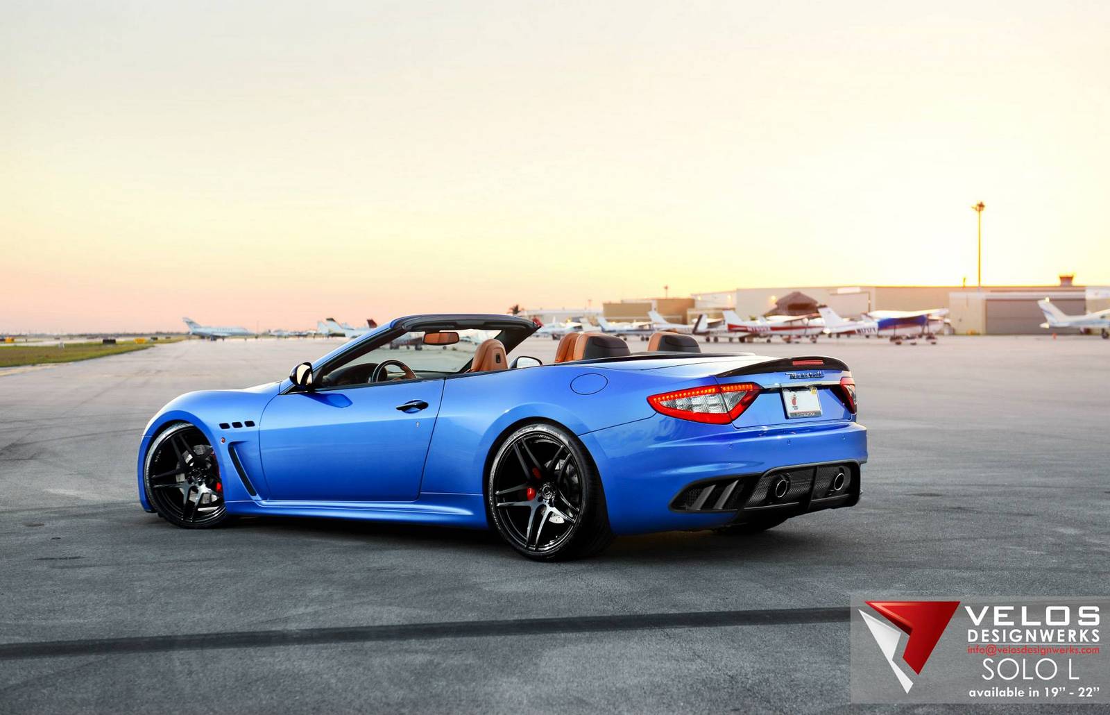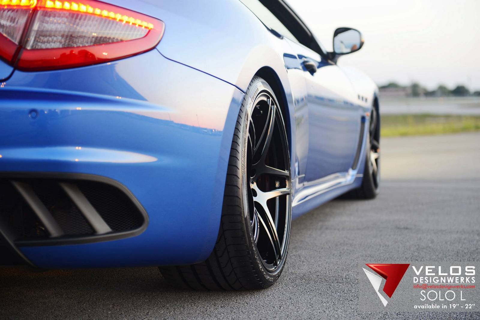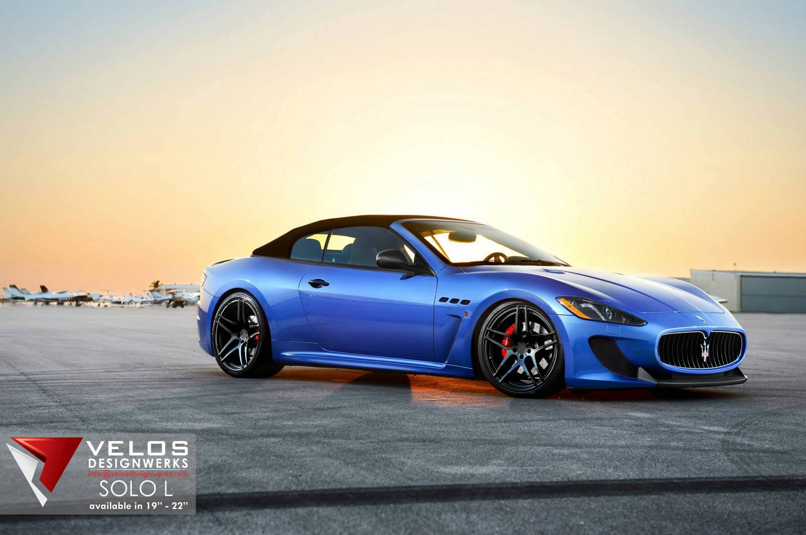 除此之外,如果你是那種買東西一定要選最高等級的、買次等級的會很難熬的人,那麼選擇目前Maserati旗下最貴量產車的Maserati GranCabrio MC就對了,也請記得把選配表填滿。但是,即便是配備全滿的Maserati GranCabrio MC,對於Velos Designwerks依舊稍嫌不足。因此,Velos Designwerks為這部藍色塗裝的GranCabrio MC準備了專用的Solo L款式輪圈,圈面採用黑色塗裝,與藍色車身、黑色頂篷形成優雅的對比,另外透過高低軟硬可調避震器組,將車身降低,營造出貼地飛行的視覺感受。 Velos Designwerks所設計的Solo L款式輪圈提供19吋至22吋的規格,並且分為鑄造與鍛造兩種版本,有興趣的Maserati車主們不妨參考。