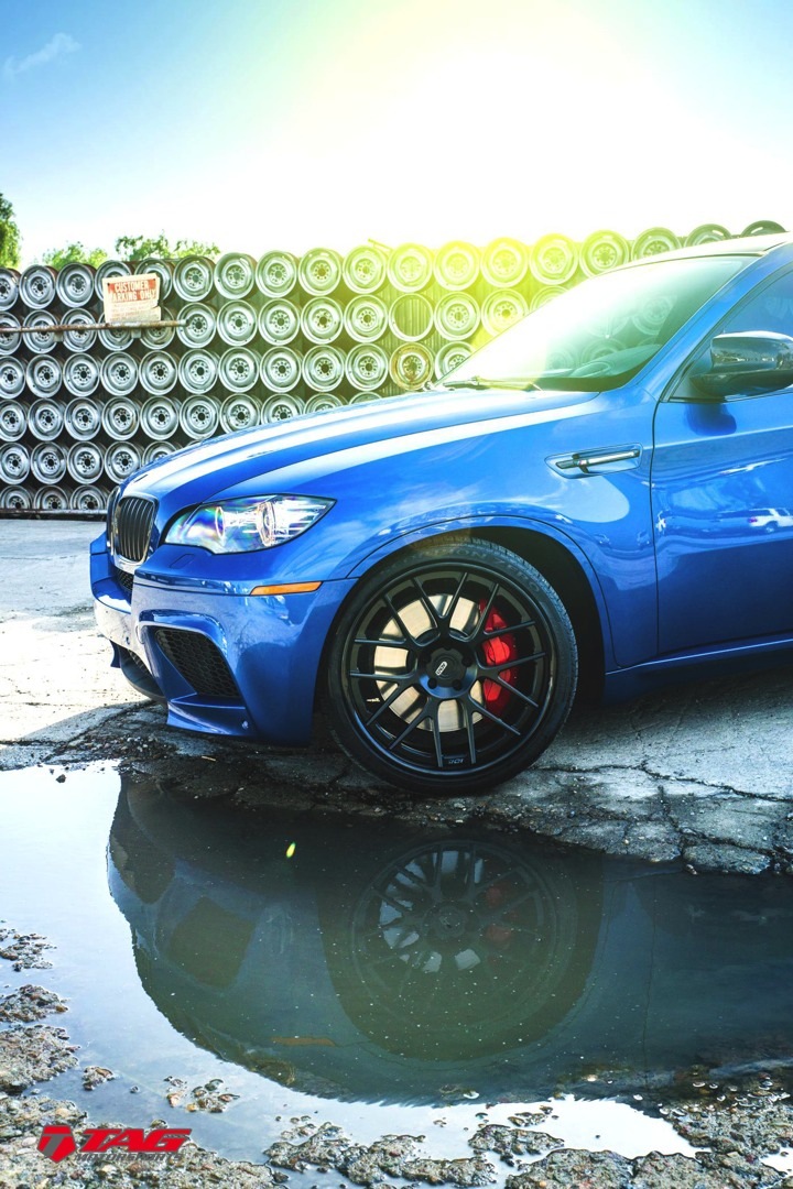 外觀方面,BMW X6M配有專屬的M款空力套件,包含沒有霧燈的前保桿、側裙組與後保桿等部品,然而較為內斂的造型使得外行人較無法辨識出其旗艦車型的身分。有鑑於此,知名改裝廠TAG Motorsports為眼前這部BMW X6M加裝Vorsteiner碳纖維後下擾流板與擾流尾翼、換裝知名品牌ADV.1 Wheels出品、型號ADV7DC的輪圈,尺寸為22吋,圈面以消光黑色處理,外圈則是選用亮面黑色塗裝,另外將煞車卡鉗施以紅色烤漆並透過H&R短彈簧將車身降低,呈現出原廠車沒有的動感視覺效果。