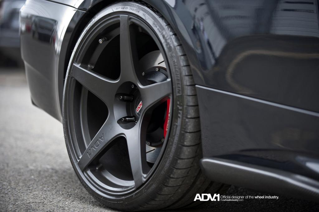 底盤方面,車主選用StopTech煞車系統與知名品牌ADV.1 Wheels出品、型號ADV5 MV1的黑色輪圈,尺寸為前20x8.5J、後20x11J的前後配設定,另外以KW V3高低軟硬可調式避震器將車身略微降低,再配合Mode Carbon碳纖維前下巴與後下擾流板等部品,呈現出俐落的狂暴動感。