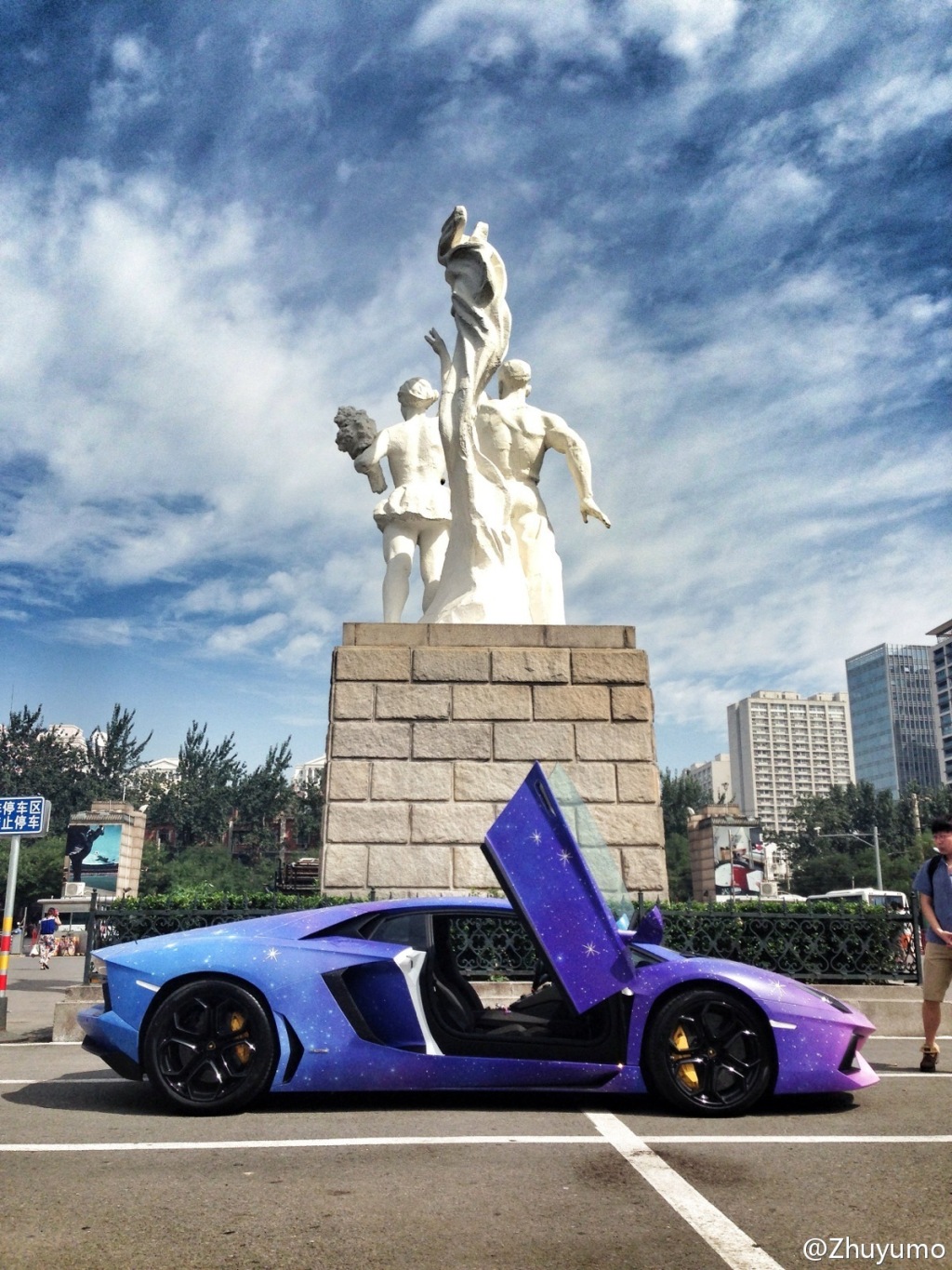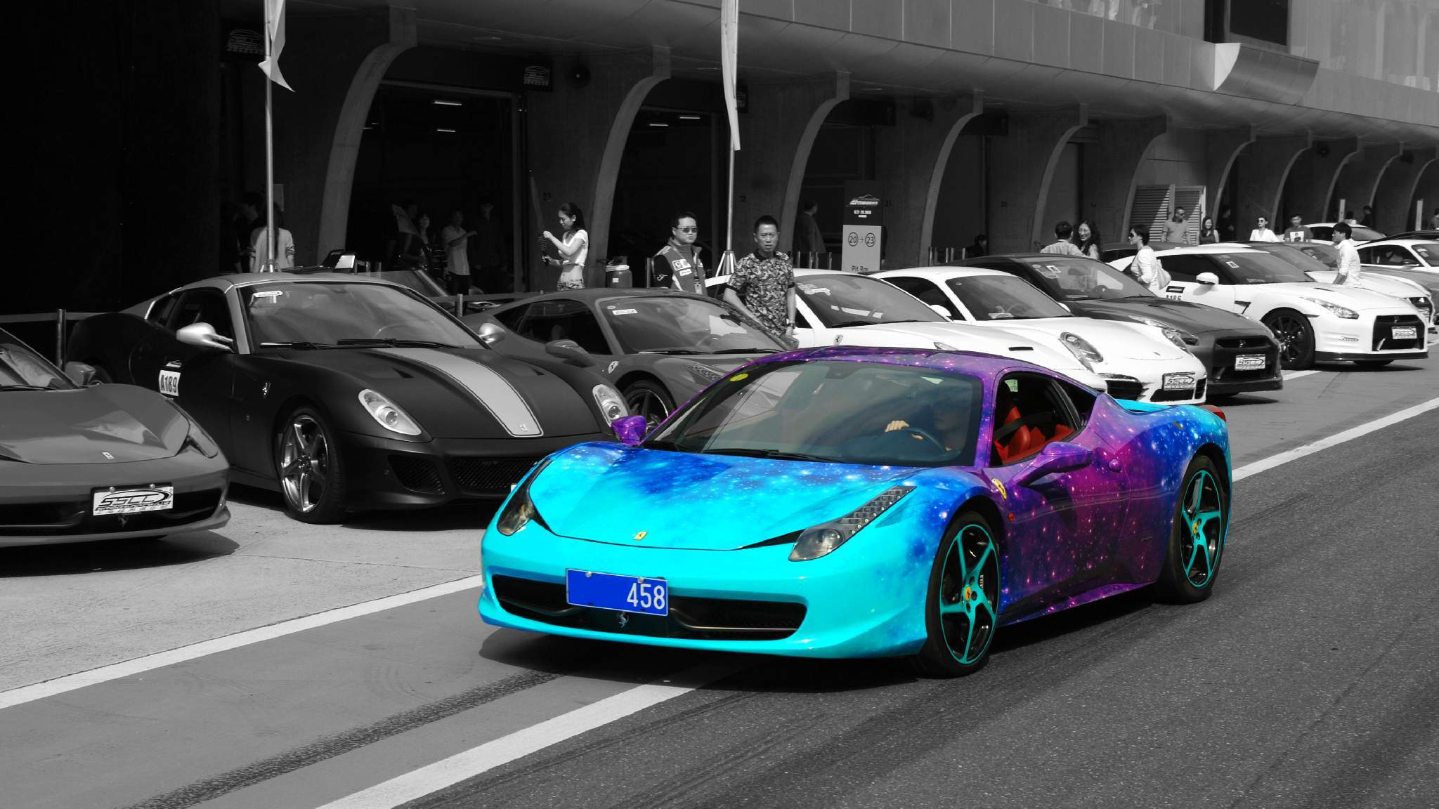 然而,今天帶給各位的可能並非簡易的烤漆或貼膜工程便可達成的車身外觀,乃是眼前這種以日間天空的淡藍色、彩虹色、夜晚星空與鑽石混合搭配出的奇特顏色,營造出極為獨特的視覺效果。設計出這款顏色的是中國(China)當地非常著名的超級跑車俱樂部SCC Sports Club,他們以Lamborghini Aventador LP700-4、Ferrari F12 Berlinetta與Ferrari 458 Italia等最新款式的超級跑車為展示車款,在城市的各個角落吸引無數目光,在細微處甚至用上如假包換的鑽石顆粒,質感上乘、豪奢盡現。