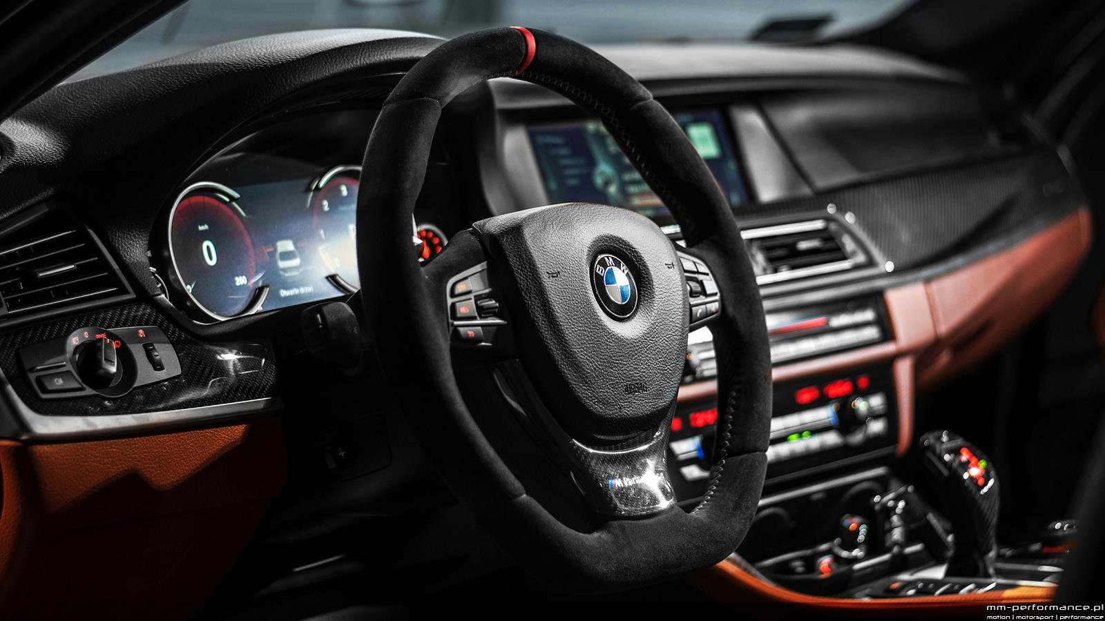 外觀方面,其實BMW M550d xDrive與配有M款空力套件的520d相似,若非仔細揣摩,難以辨識。波蘭(Poland)改裝廠MM Performance針對眼前這部黑色塗裝的BMW F10 M550d xDrive進行了多項妝點,除了裝上來自原廠BMW Performance部門的水箱罩與碳纖維後視鏡蓋以外,另外選用知名品牌Vorsteiner出品的碳纖維前下巴、後下擾流板、後上尾翼等部品,輪圈則是換裝Vorsteiner VS-340的21吋款式,素雅卻質感盡現。內裝方面,MM Performance則以Vorsteiner絨毛腳踏墊、BMW Performance麂皮運動版方向盤與碳纖維飾板為主軸,將内裝打理得頗具質感。