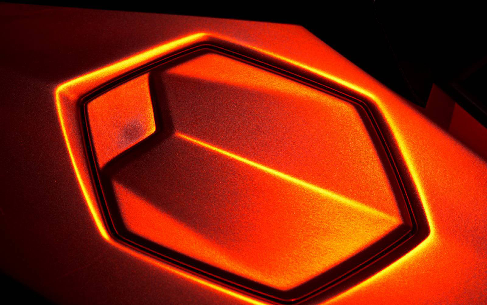 然而,眼前這部Lamborghini Aventador LP700-4的車主看完了原廠目錄之後,竟然無從決定,便索性挑了一部Nero Pegaso黑色塗裝的現車,交車後立刻找上擅長於轉印技術的知名廠商Print Tech,用上特殊的電鍍橘紅色、擁有髮絲鋼效果的轉印布料,與傳統的貼膜或車身彩繪貼紙不同,呈現出的視覺效果相當逼真,宛如原廠選配般地完整。