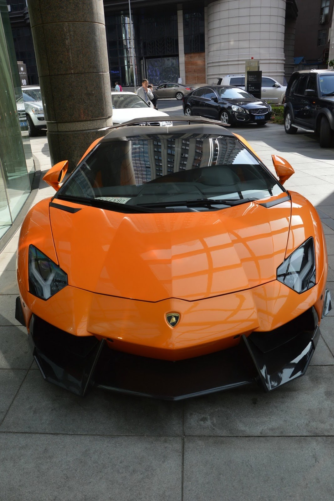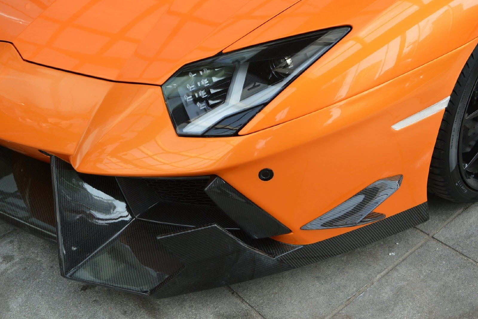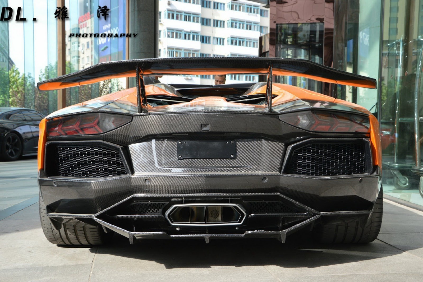 如同各位眼睛所見,這些照片的拍攝地點是大陸(China),而改裝品牌DMC則是將這組套件取名SV。對於義大利車廠Lamborghini來說,SV這兩個英文字母代表Super Veloce,也就是英文中的Super Fast之意,但是DMC取名SV的意思是Special Version(特別版),因為他們只打算供應10組。這款名為DMC SV Package的空力套件包含碳纖維前下巴、定風翼、可調式尾翼與後保桿等部品,讓原本造型就已經相當俐落的Lamborghini Aventador LP700-4 Roadster更顯侵略性,配在橘色車身上更是醒目。