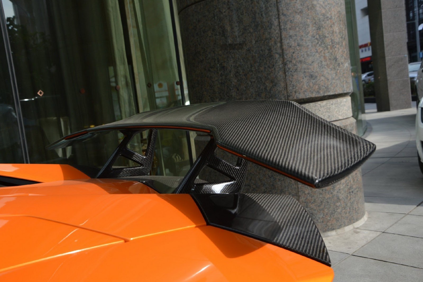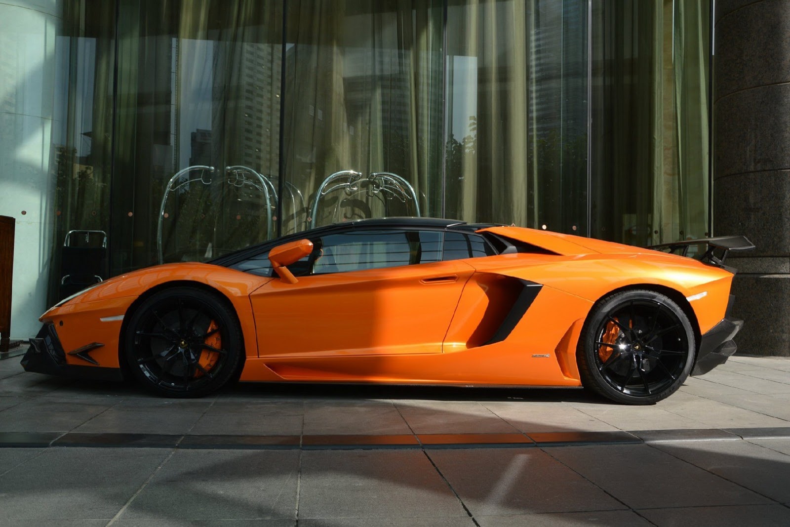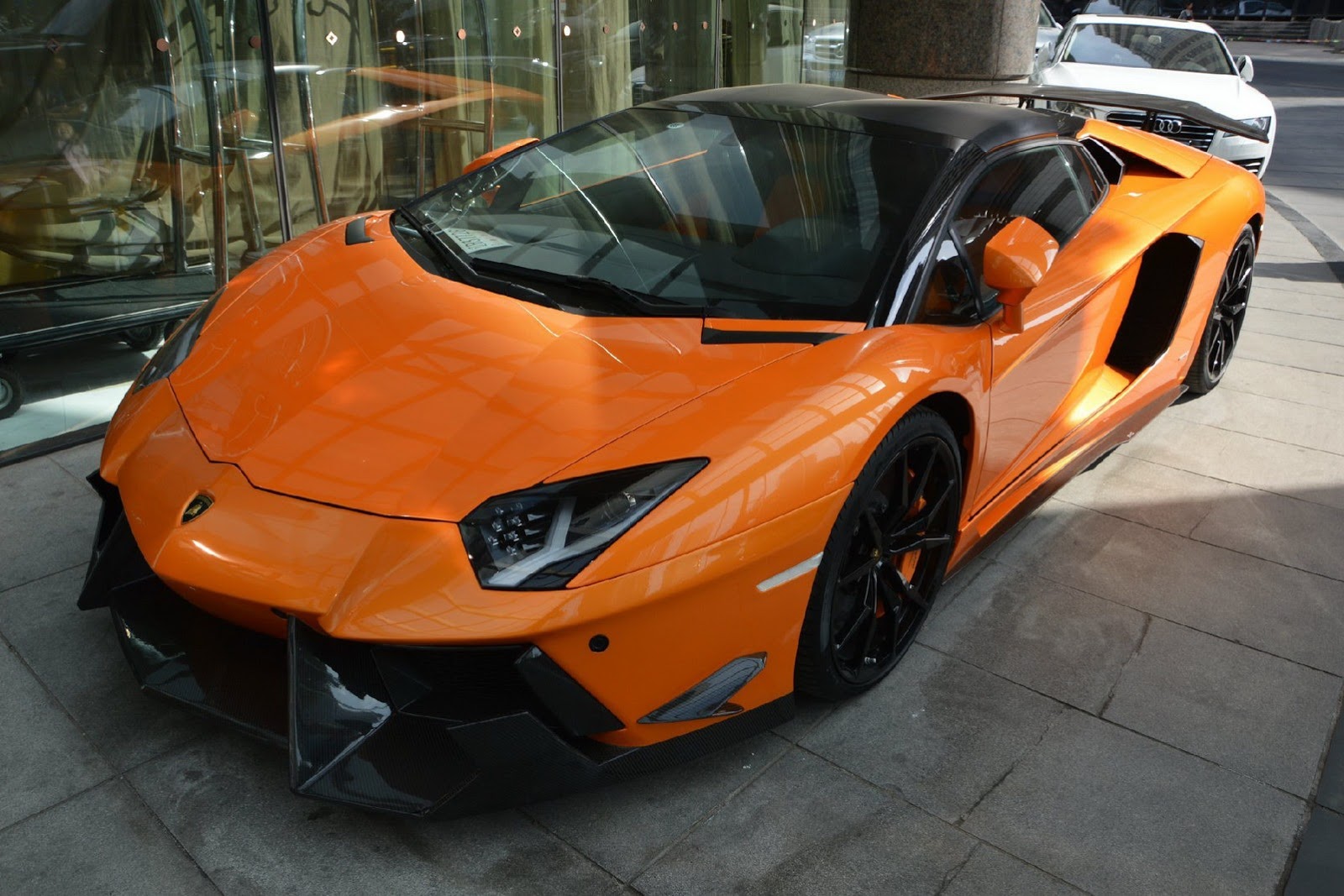 如同各位眼睛所見,這些照片的拍攝地點是大陸(China),而改裝品牌DMC則是將這組套件取名SV。對於義大利車廠Lamborghini來說,SV這兩個英文字母代表Super Veloce,也就是英文中的Super Fast之意,但是DMC取名SV的意思是Special Version(特別版),因為他們只打算供應10組。這款名為DMC SV Package的空力套件包含碳纖維前下巴、定風翼、可調式尾翼與後保桿等部品,讓原本造型就已經相當俐落的Lamborghini Aventador LP700-4 Roadster更顯侵略性,配在橘色車身上更是醒目。