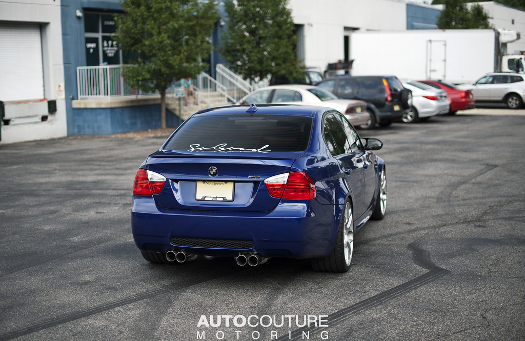 今天帶給各位的是由改裝廠AUTOCouture Motoring(ACM)所操刀的BMW E90 M3,前保桿裝上Mode Carbon出品的碳纖維前下巴、與車身同色的iND側燈飾蓋與刻劃有M款三色飾條的黑色水箱護罩,後下擾流板則使用Varis的碳纖維款式,排氣管選用Active Autowerke中尾段。另外,底盤部分,AUTOCouture Motoring選用KW V3高低軟硬可調避震器組與知名品牌HRE Performance Wheels、型號P40S的鍛造輪圈,在增進操控性能的同時,也營造出更具動感的車身外觀。