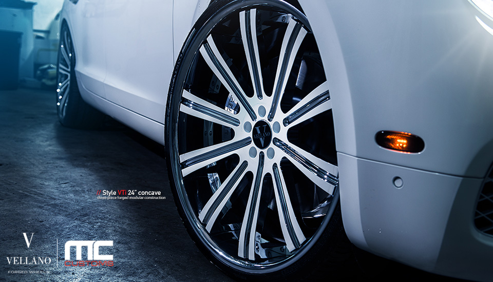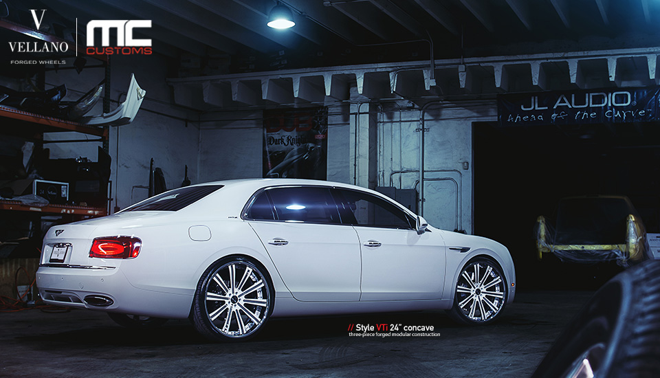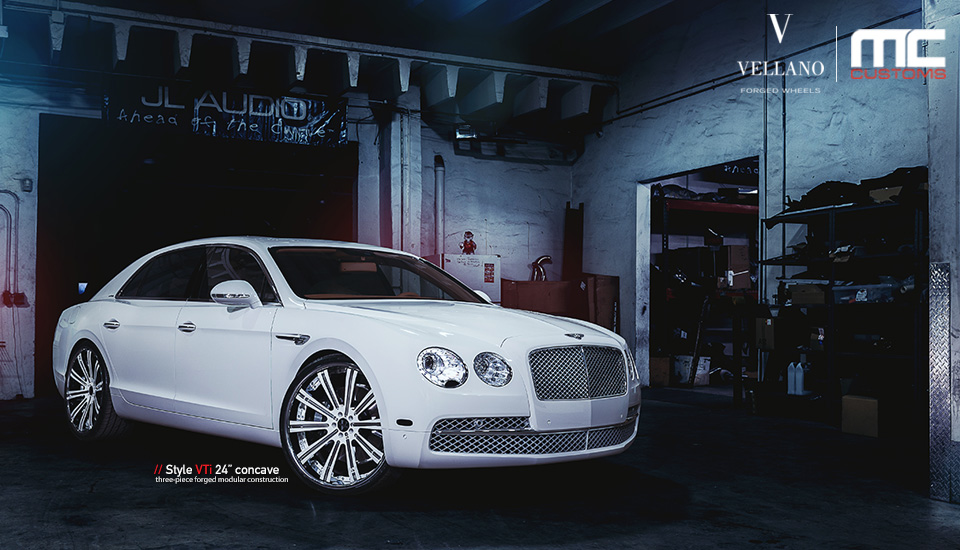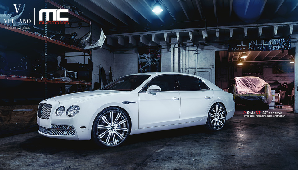 今天為各位帶來的是由改裝廠MC Customs所推出的2014年款式Bentley Flying Spur,白色塗裝的車身配上Vellano Wheels出品、型號VTi的內凹款式24吋輪圈,豪華與動感兼具。