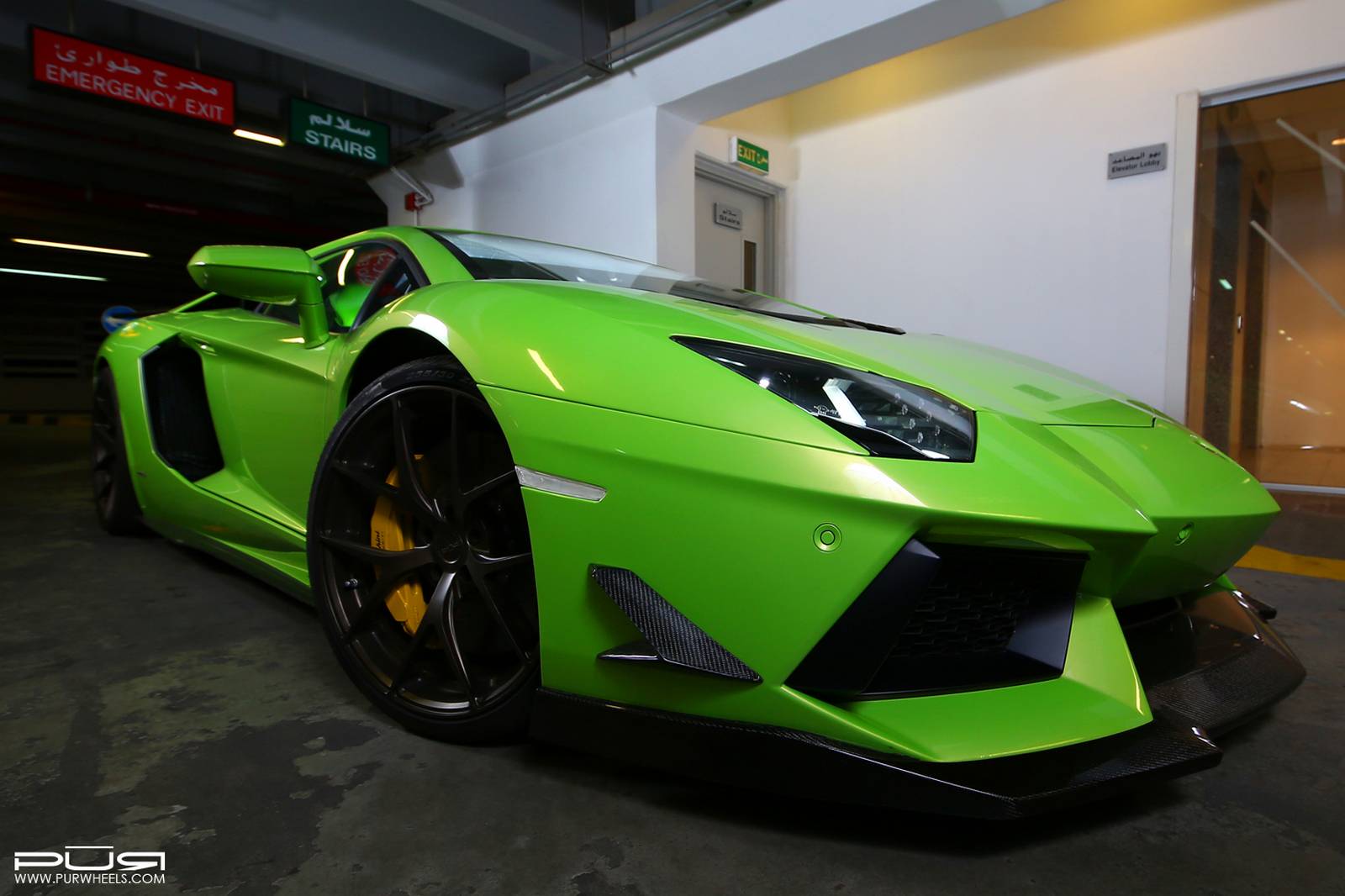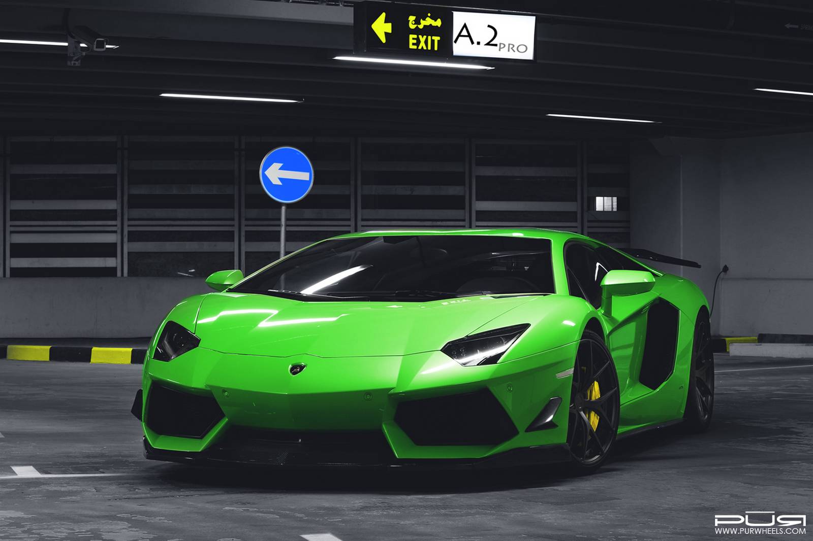 碳纖維亮綠妝點 : Lamborghini Aventador LP700-4 x PUR Wheels