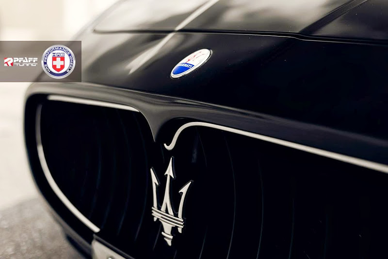 眼前這部黑色塗裝,由改裝廠Pfaff Tuning所操刀的Maserati Gran Turismo於義大利出廠時便以最簡單的配備售出,車主本身擁有多部Lamborghini、Ferrari等超級跑車,因此他在選購這部Maserati的時候便以視覺系、代步功能為主要考量。新車到手沒多久,車主便將它開到改裝廠Pfaff Tuning、換裝知名輪圈品牌HRE出品、型號P40SC的輪圈,主體採用黑色塗裝,整體搭配起來相當素雅,即便不若MC Stradale般競技,靜靜地也很迷人。