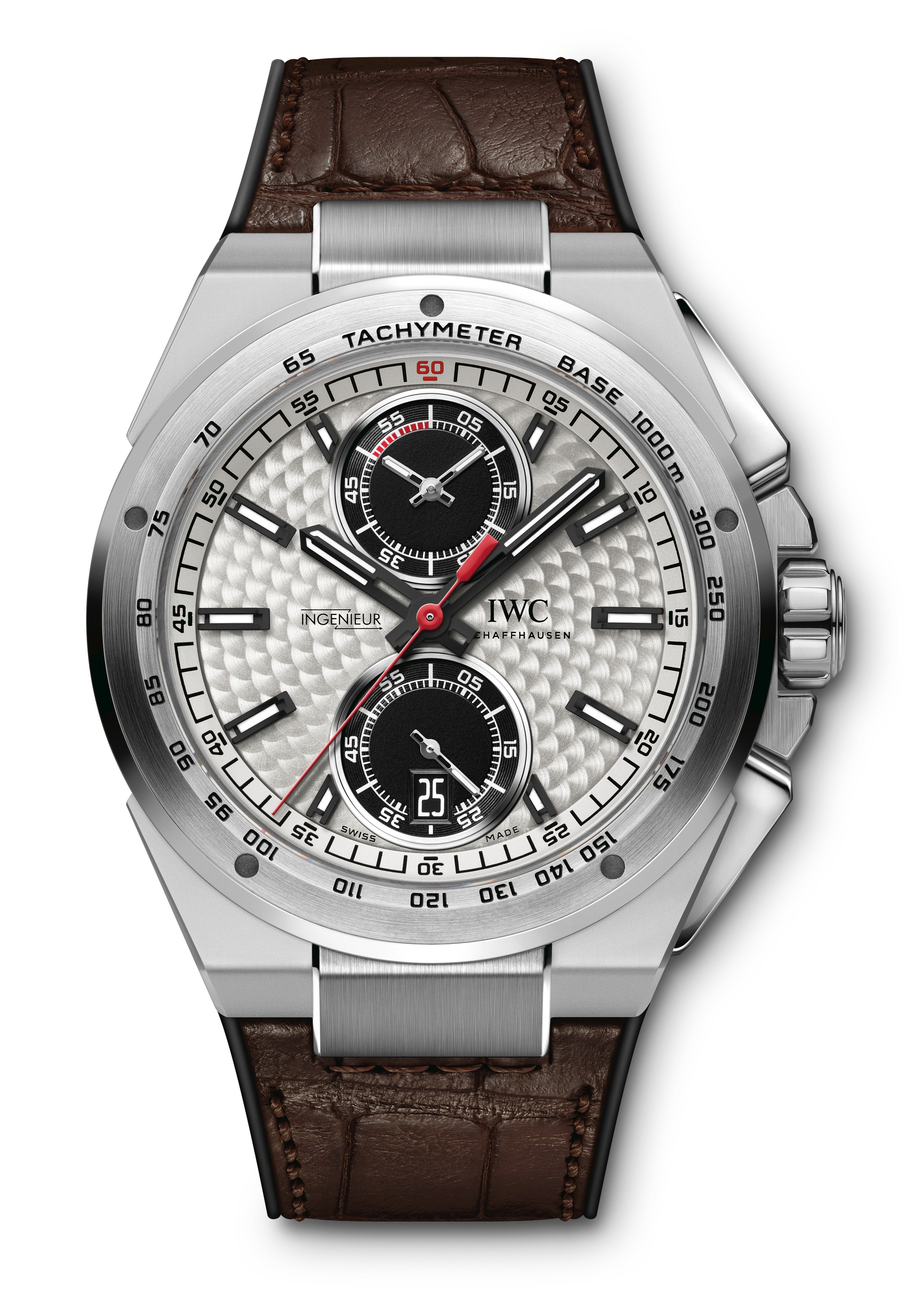 2013年,沙夫豪森IWC萬國錶將享有盛譽的「工程師」和「銀箭」合二為一,推出了全新的工程師計時腕錶銀箭特別版。這款精鋼錶殼的計時腕錶在工程師系列中第一眼看上去就已經卓爾不群。特別引人矚目的是飾有珠形紋飾的銀色(型號IW378505)或棕色(型號IW378511)錶盤。點珠研磨而出的雲狀飾紋一般用於點綴背板和橋板,而在這裡則是對傳奇梅賽德斯–賓士W25賽車的禮讚,這輛賽車的各項儀表就裝配在一塊飾有珠形紋飾的儀表板中。圓形的研磨紋飾賦予工程師計時腕錶銀箭特別版一種高品質和充滿技術魅力的外觀,令觀賞者陶醉於迷人的光影交輝之中。鍍銀及棕色錶盤上的紅色元素取材自測速計和轉速計的造型。日期顯示內置於下方的累加器中,令錶盤保持了完美對稱。