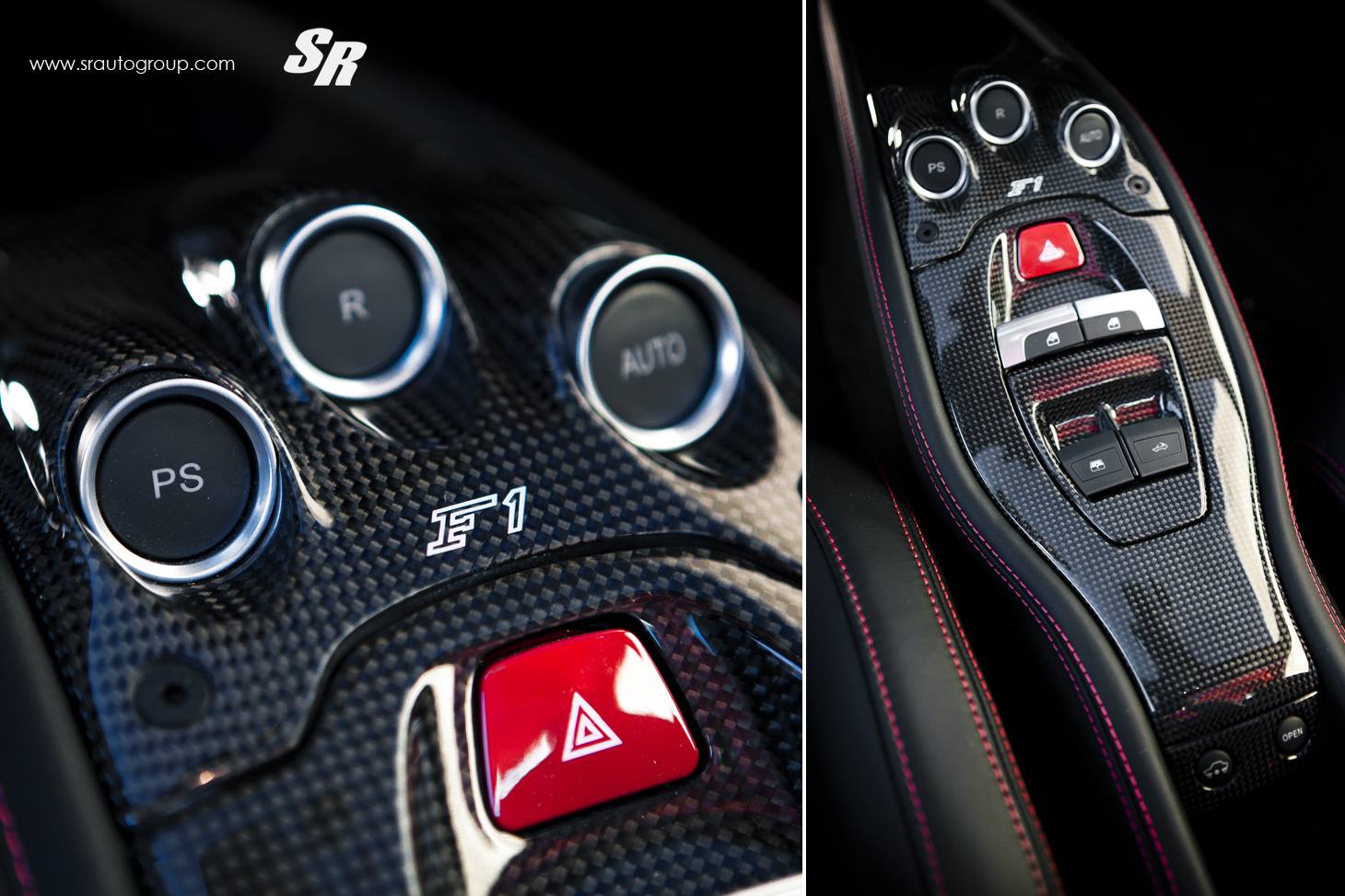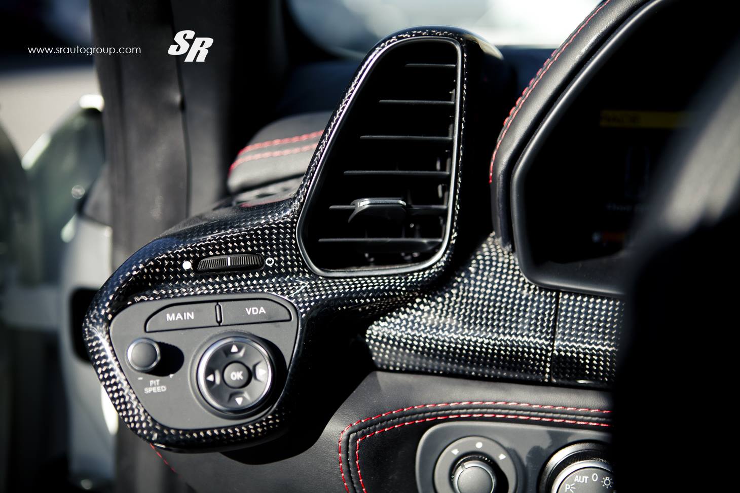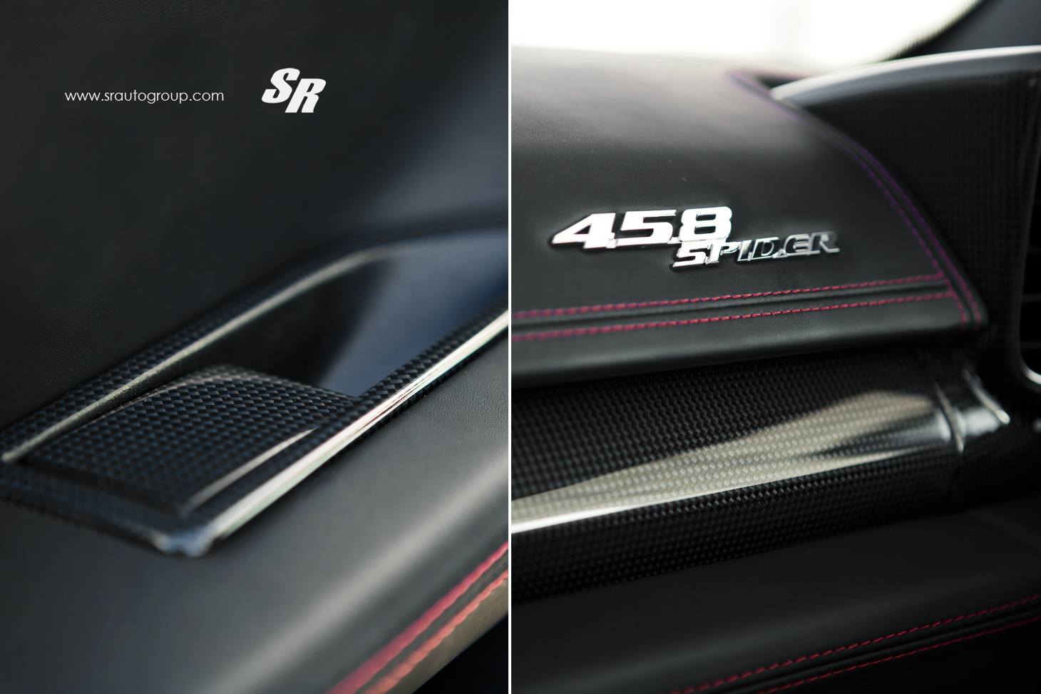 透過換裝避震器,這部車身已經降得低趴的Ferrari 458 Spider另外裝上PUR出品、尺寸前21、後22吋的黑色塗裝輪圈,流露出熱情十足的跑格。內裝方面也是全面向原廠選配清單中的部品看齊,換裝MA Carbon出品的碳纖維內裝飾板,包含儀錶板周邊、中央扶手、冷氣出風口與門把等處,使得座艙質感獲得明顯的提升。