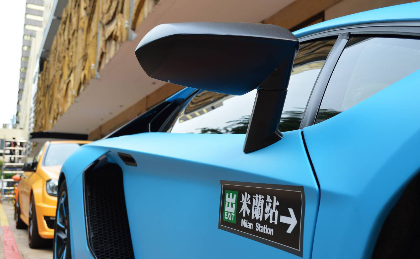 沒錯,就是同一台! 然而,這次除了重新施以包膜工程改色外,還加裝了剛發表不久的Novitec Torado空力套件,包含碳纖維前下巴、側邊定風翼、後擾流尾翼與後下擾流板等部品,車尾倒車攝影鏡頭上方的Lamborghini字體則是維持原有的紅色塗裝,另外以紅色、黑色飾條貫穿全車,感覺頗有Pagani Cinque的風格,莫非先前出現於希爾頓飯店門否的Pagani Cinque也是這位車主的?