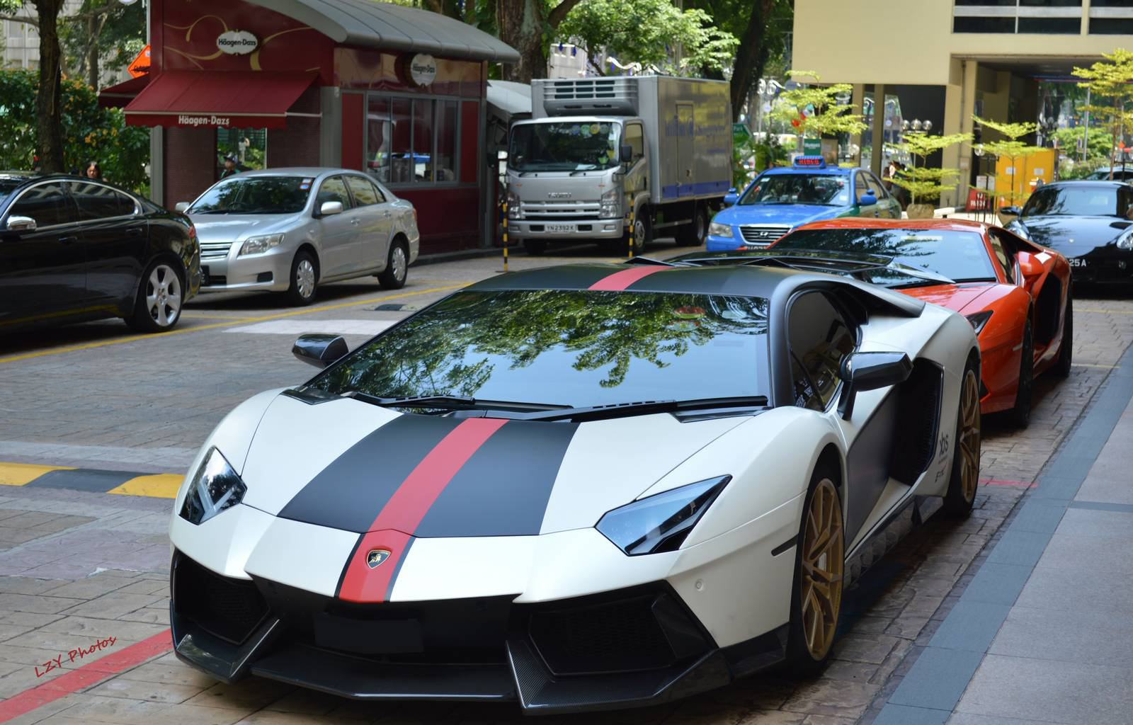 特別關注分布於全球各角落的Lamborghini Aventador LP700-4的朋友們一定會對以上圖片感到似曾相識,卻很肯定眼前這部白色Aventador浮出檯面不會太久,再者,背後場景有勞力士(Rolex)手錶展示間、新加坡希爾頓飯店(Hilton Singapore)與卡地亞(Cartier)等,是否讓你聯想到著名的愛因斯坦號Lamborghini Aventador E=MC2?