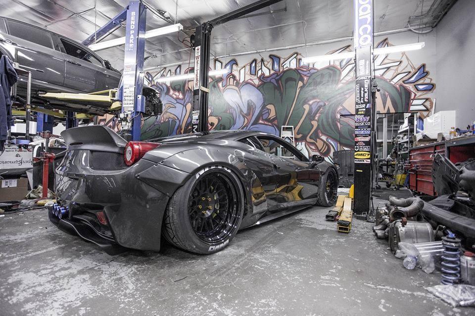 稍早,透過知名網站Speed Hunters的專訪,這部鐵灰色塗裝的Ferrari 458 Italia提前曝光並且留下許多精美影片,然而今天帶給各位的是它於廠內施工到尾聲、正式宣布完工的動感時刻,即使照片畫質不高,那帶點粉塵味、鋼鐵感十足的氛圍,相信有駐守改裝廠等待愛車完工的朋友們能夠感受得到。LB Performance在這部義大利超級跑車身上安裝了全車寬車體套件,另外透過Rotiform輪圈、高低軟硬可調式避震器、側邊施以白色紋字的Nitto INVO跑胎、與綠色塗裝煞車卡鉗等部品完成最後修飾,車尾露出的Armytrix鈦合金排氣管也相當對味,整部車散發出濃厚的日系風格,相當獨特。根據消息指出,針對這次SEMA改裝車展,LB Performance將會派Nissan R35 GTR與這部Ferrari 458 Italia出席,閃光燈與掌聲滿場的畫面精彩可期。