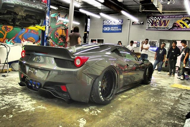 大約幾個月之前,車庫柒號有為各位報導過日本改裝品牌Liberty Walk Performance即將推出改裝版本的Ferrari 458 Italia,而就在美國SEMA改裝車展開始前,我們接獲消息指出這部萬眾期待的義大利超級改裝跑車即將完工,並且來得及出席這場全球矚目的改裝車展。