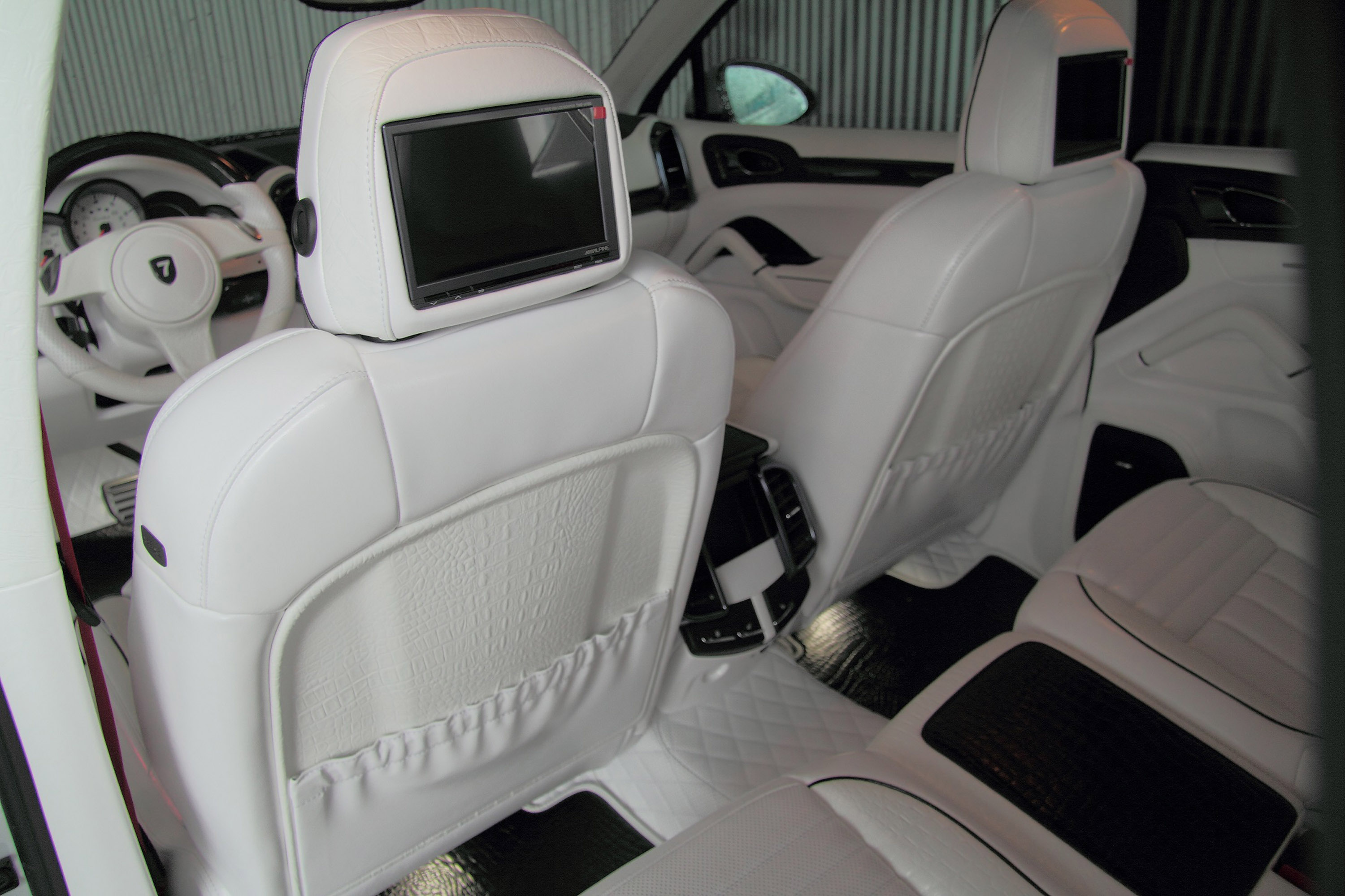 內裝方面絲毫不馬虎,Anderson Germany用上少見的鱷魚皮包覆中控台,另外用上黑白雙色高檔真皮搭配碳纖維飾板與各式黑色飾板,營造出風格獨具的客製化內裝。除此之外,位於車尾的三出排氣管與LED門檻也相當吸睛,算是近期車壇中少見的Cayenne完整改裝作品!