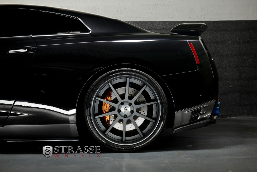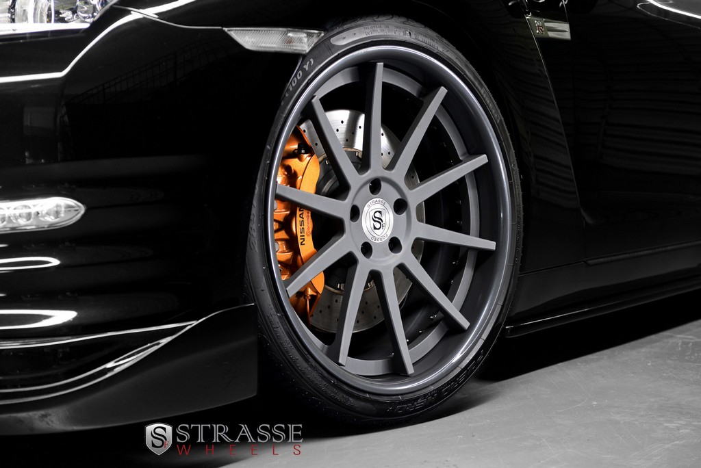 雖說市面上有一些可將Nissan R35 GTR改到超過1,000HP的套件,然而車主注重外觀的塑造與整體操控平衡性,故選擇暫時維持700HP的設定,另外換裝Strasse Forged Wheels出品、型號R10的大內凹款式輪圈,尺寸為前21x10.5J、後21x12.5J的前後配規格,搭配前285/30R21、後355/25R21的超寬Pirelli P Zero Nero高性能跑胎,空力套件部分則是選擇加裝前下巴、側裙延伸板件與後下擾流板等部品,使得這部黑色塗裝、沒有過多彩繪妝點的Nissan GTR,儘管靜靜地躺著,依舊散發出強烈的戰鬥氣息。