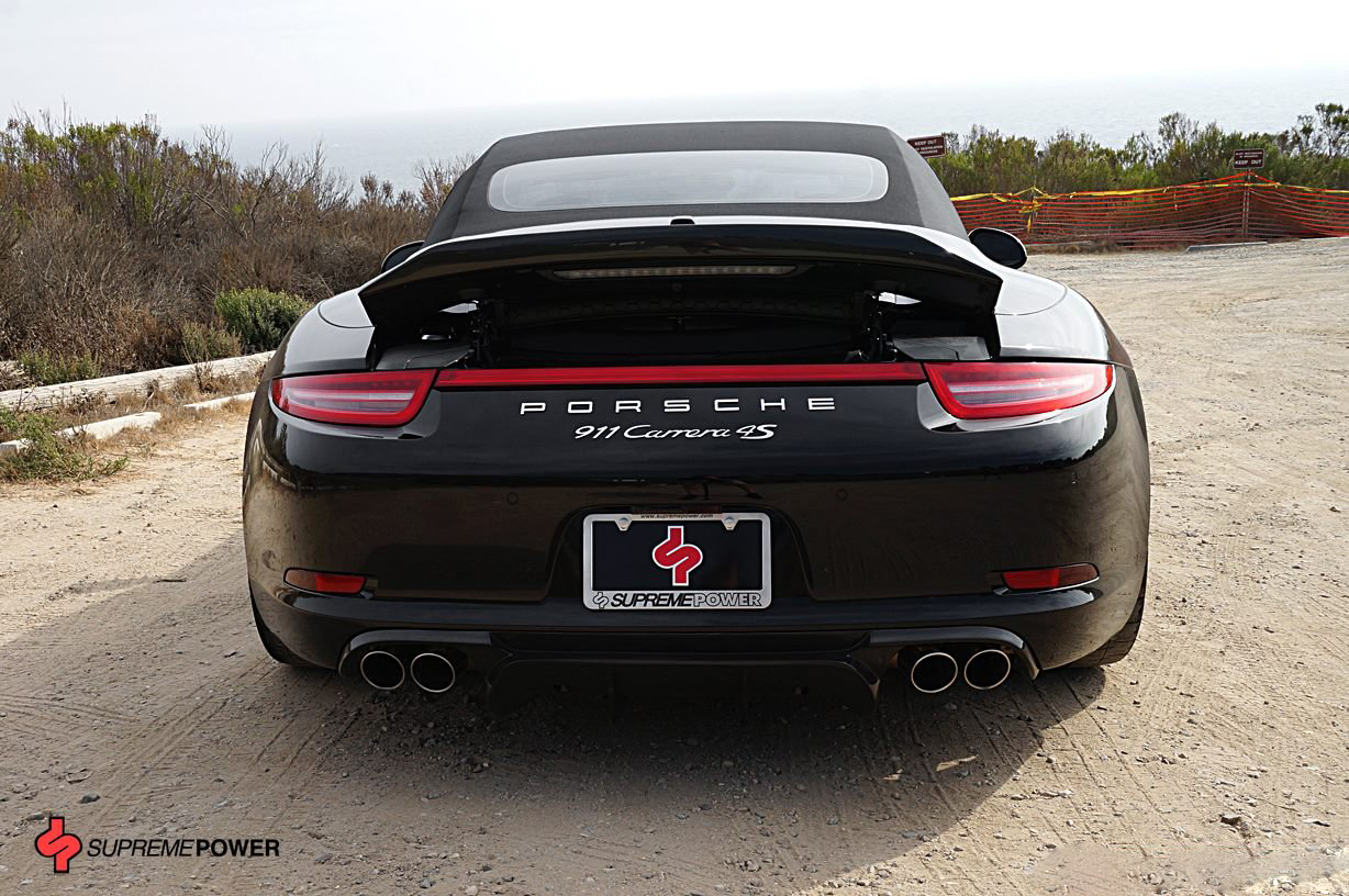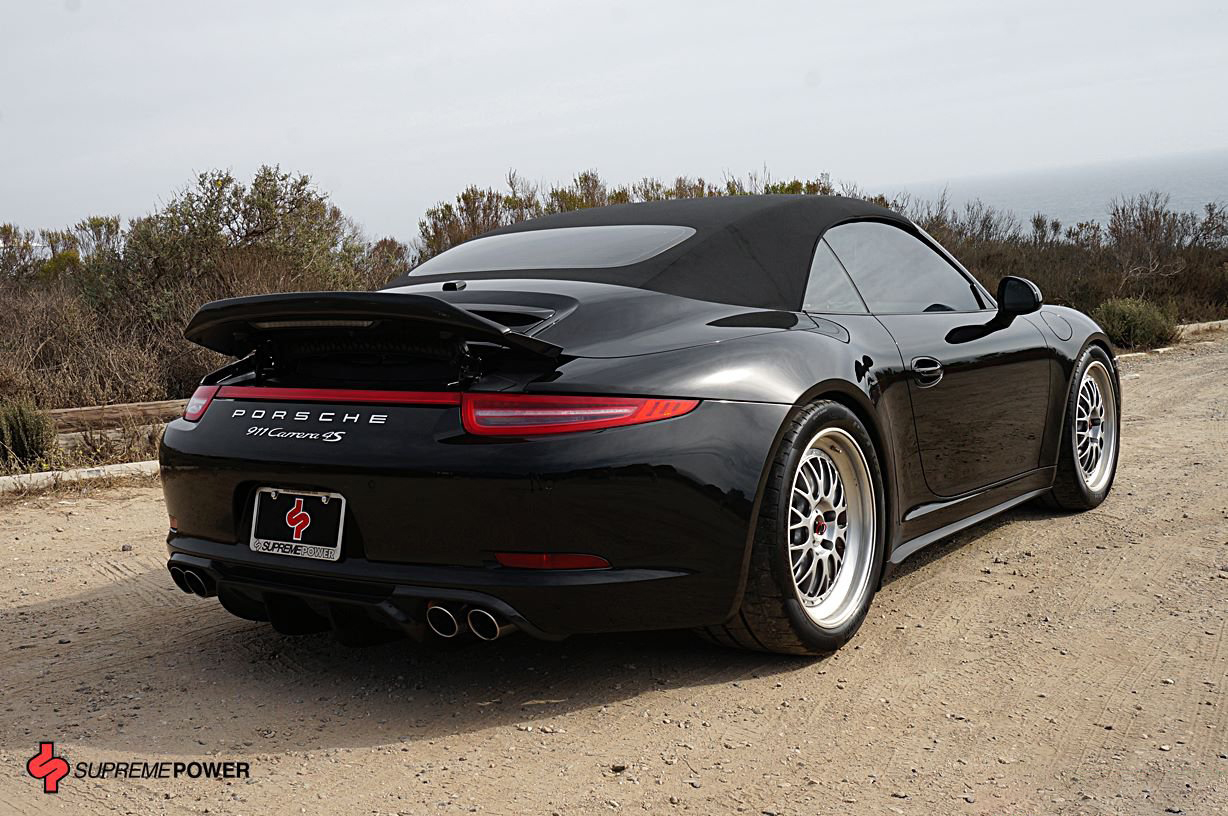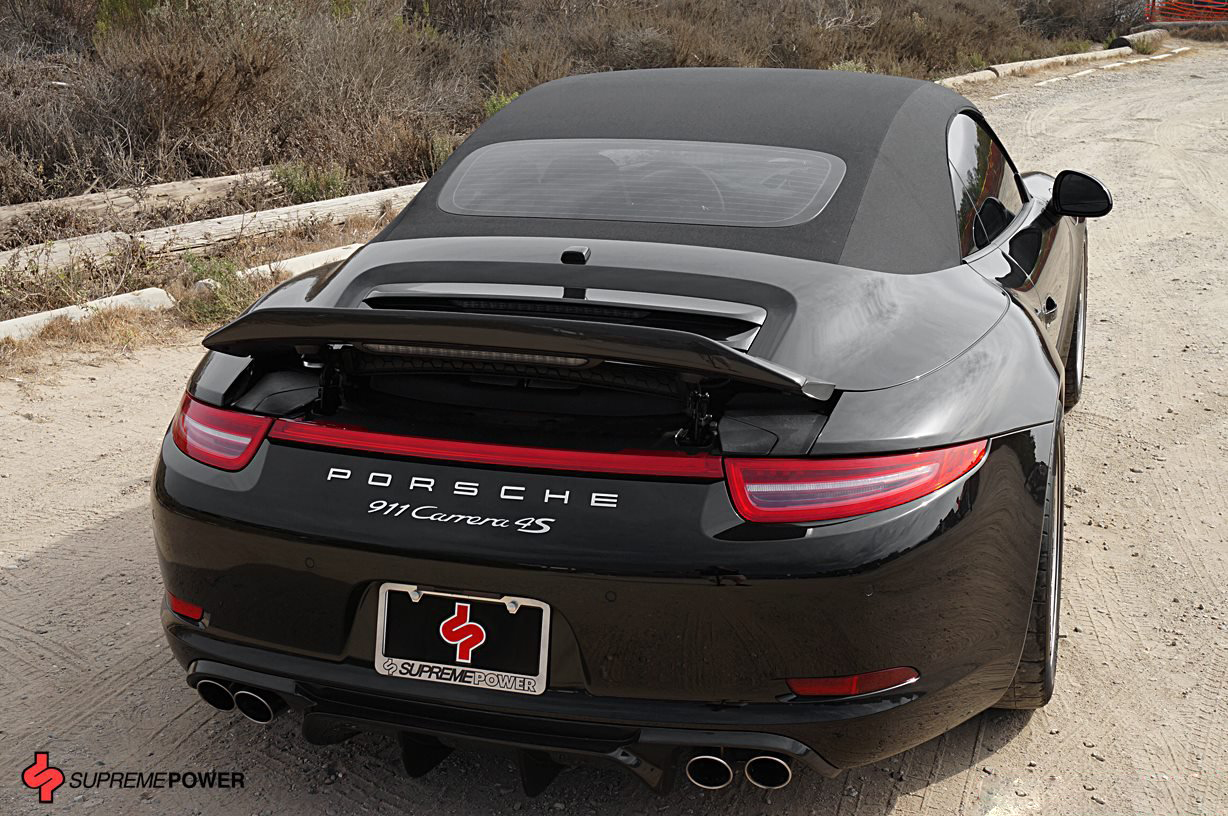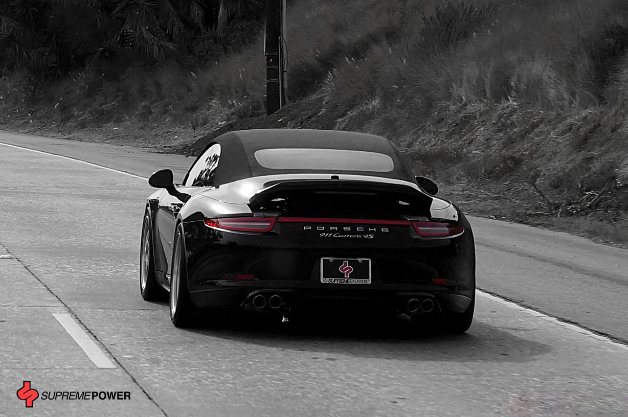 本文主角的這部黑色Porsche 991 Carrera 4S Cabrio的另外一個特色便是裝著經典的BBS多片式輪圈,搭配扁平比較高的跑胎,同時透過換裝H&R短彈簧將車身降低,散發出獨特的復古風味。Porsche 991 Carrera 4S Cabrio搭載3.8升自然進氣、水平對臥六缸引擎,最大馬力為400HP,改裝廠Supreme Power目前暫時維持原廠設定。