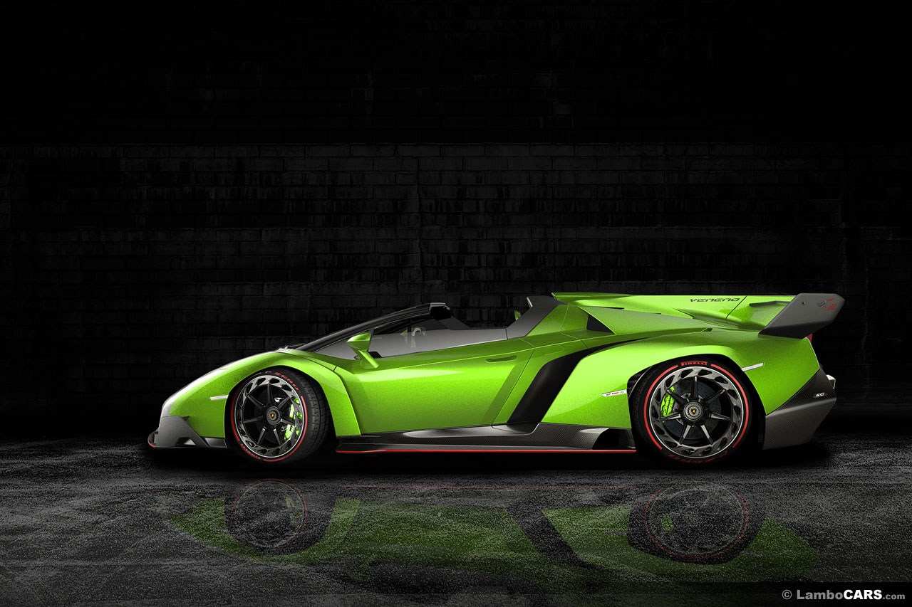這一輛車本來就非常的不一般,Roadster與一般版本Veneno本就幾乎一模一樣,而很多地方也能見到Aventador的影子與發想,其引擎採用Aventador的全新6.5升V-12引擎,能夠產生750 hp最大馬力,這強大馬力透過全輪傳動系統傳達到四顆輪子上頭,透過改造更新的ISR系統,其性能較Aventador更上層樓。 而與Veneno Coupé幾乎一模一樣,從0-100km/h只需要2.9秒,比Coupé慢上0.1秒,最高時速達到355 km/h,別看這樣龐大的身軀,竟然只有1,490kg,平均每1.99kg分配即分到一匹馬力,相當不簡單的成績,且讓我們來看看以下的車色想像圖。
