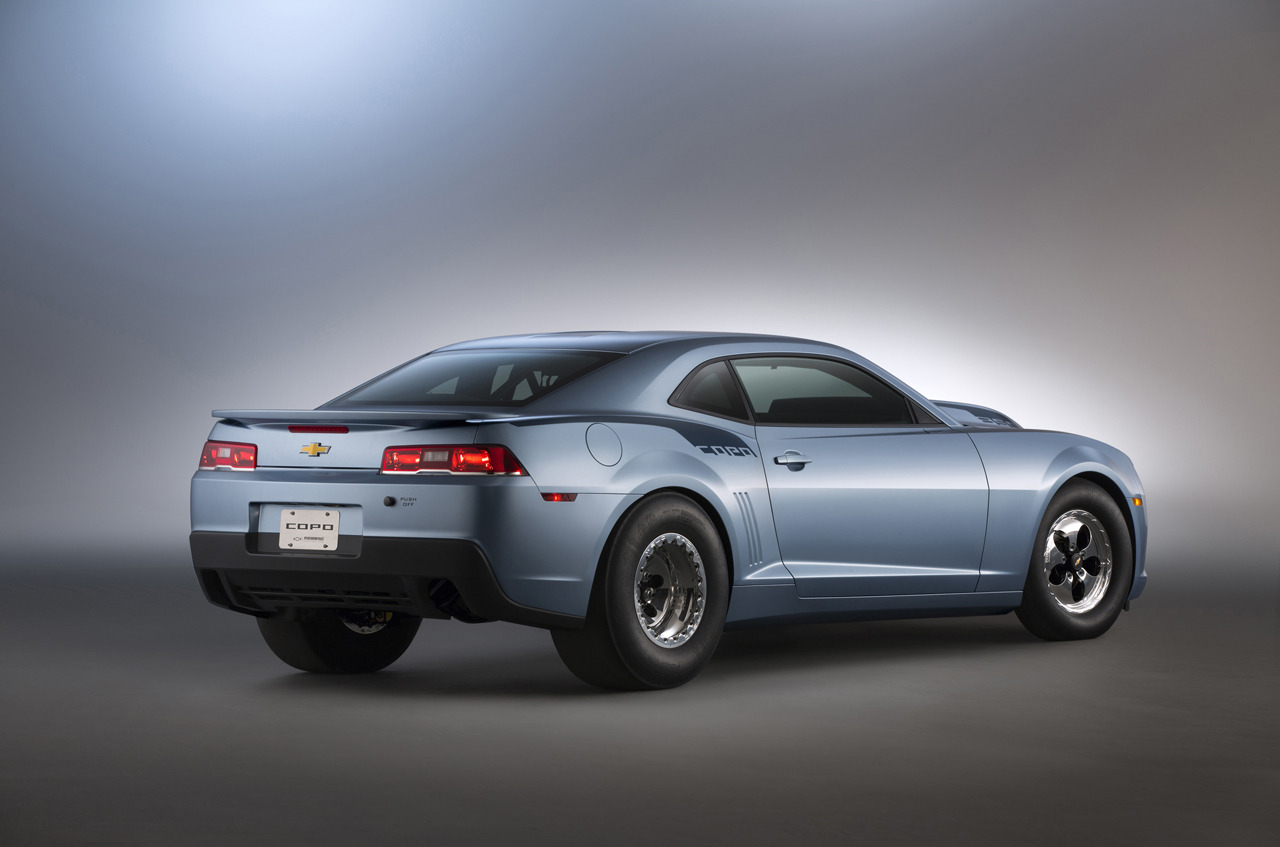 Chevrolet就在SEMA 2013之前,剛剛釋出了他們最新的2014 Chevrolet COPO Camaro,很明顯的是根據前世代的COPO Camaro衍生發想而來,而這輛車的規格毫無疑問的將會成為Camaro的旗艦車款。 僅僅限量69輛,其設計目標擺在參與NHRA Stock Eliminator和Super Stock競賽,也因此該車全面性的以性能為取向,將給予客戶根據不同之動力需求,能夠選擇所需之動力鏈,在她身上更能明顯感受馬力、速度和花費之金錢呈現之正相關。