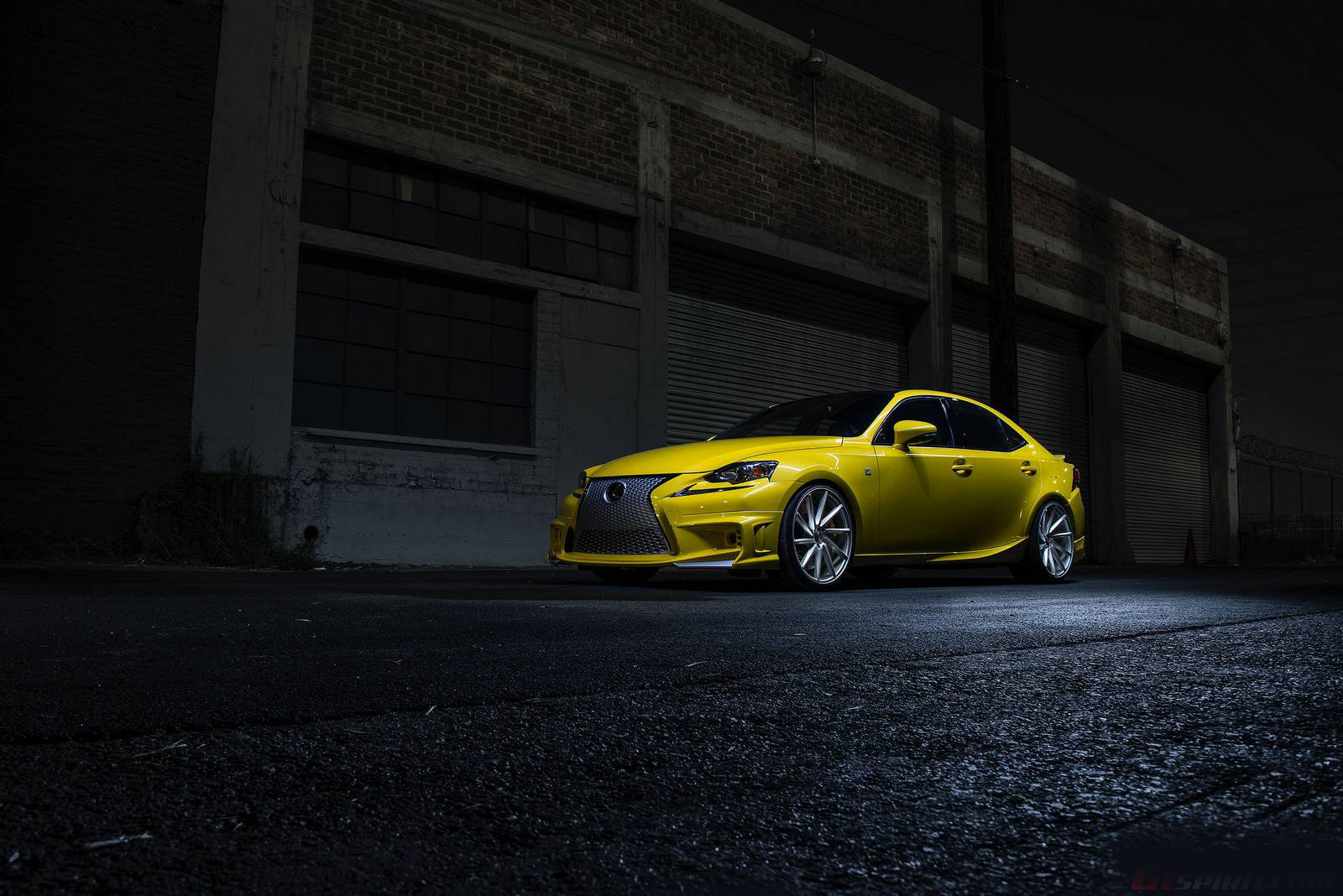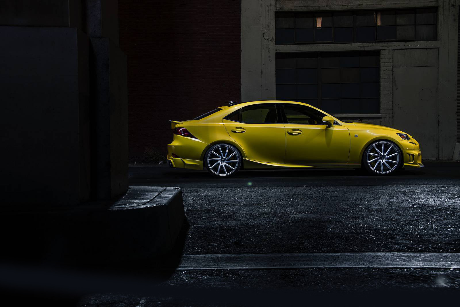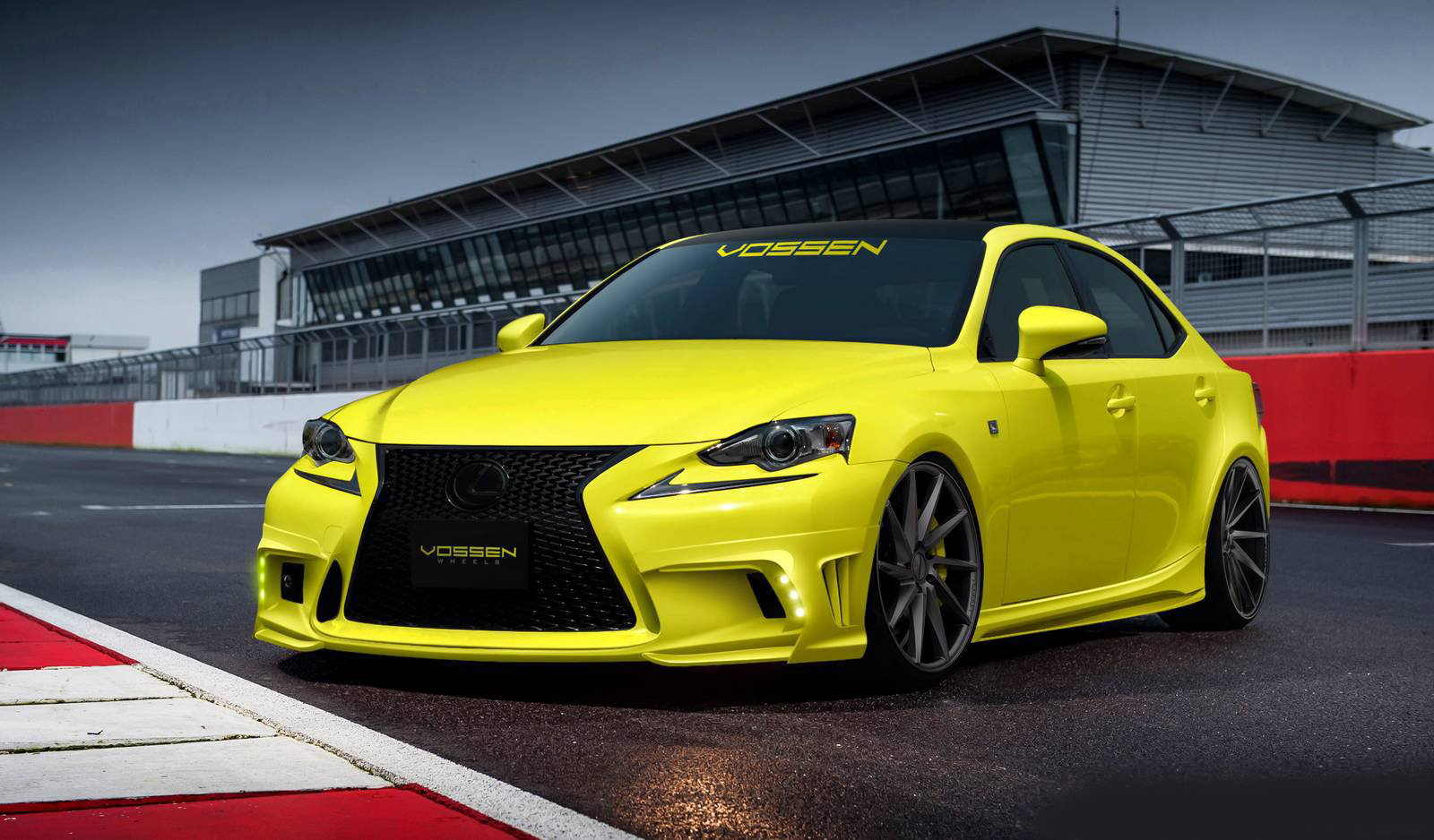 為了SEMA 2013車展,Lexus以全新的Vossen輪圈來創造他們全新獨一無二的2014 Lexus IS 350 F Sport,使得其不論是在視覺上抑或是動力表現上都能與一般版本的IS 350有所區隔,由Vossen打造的Lexus IS 350 F Spor絕對是一輛引人注目的改裝車款。 其中意義最深遠的就是他們Vossen CVT Directional系列的輪圈,採用前20×9 後 20×10.5之配置,搭配Nitto Invo前245/30/20後285/25/20之輪胎,在尺寸上就相當驚人。 再談到空力套件的部份,該車採用全套的Tommy Kaira空力套件,包括前保險桿、LED頭燈、全新側裙、後保險桿及擾流翼,最後再以全車Platinum Motorsport Lexus LFA之黃色塗裝收尾。
