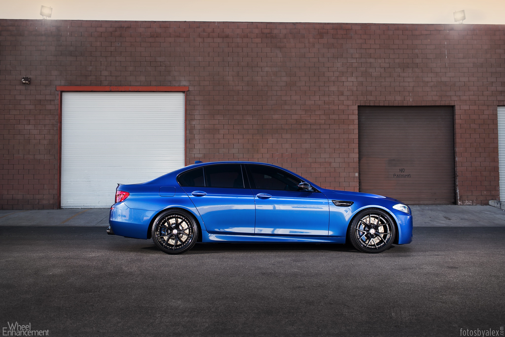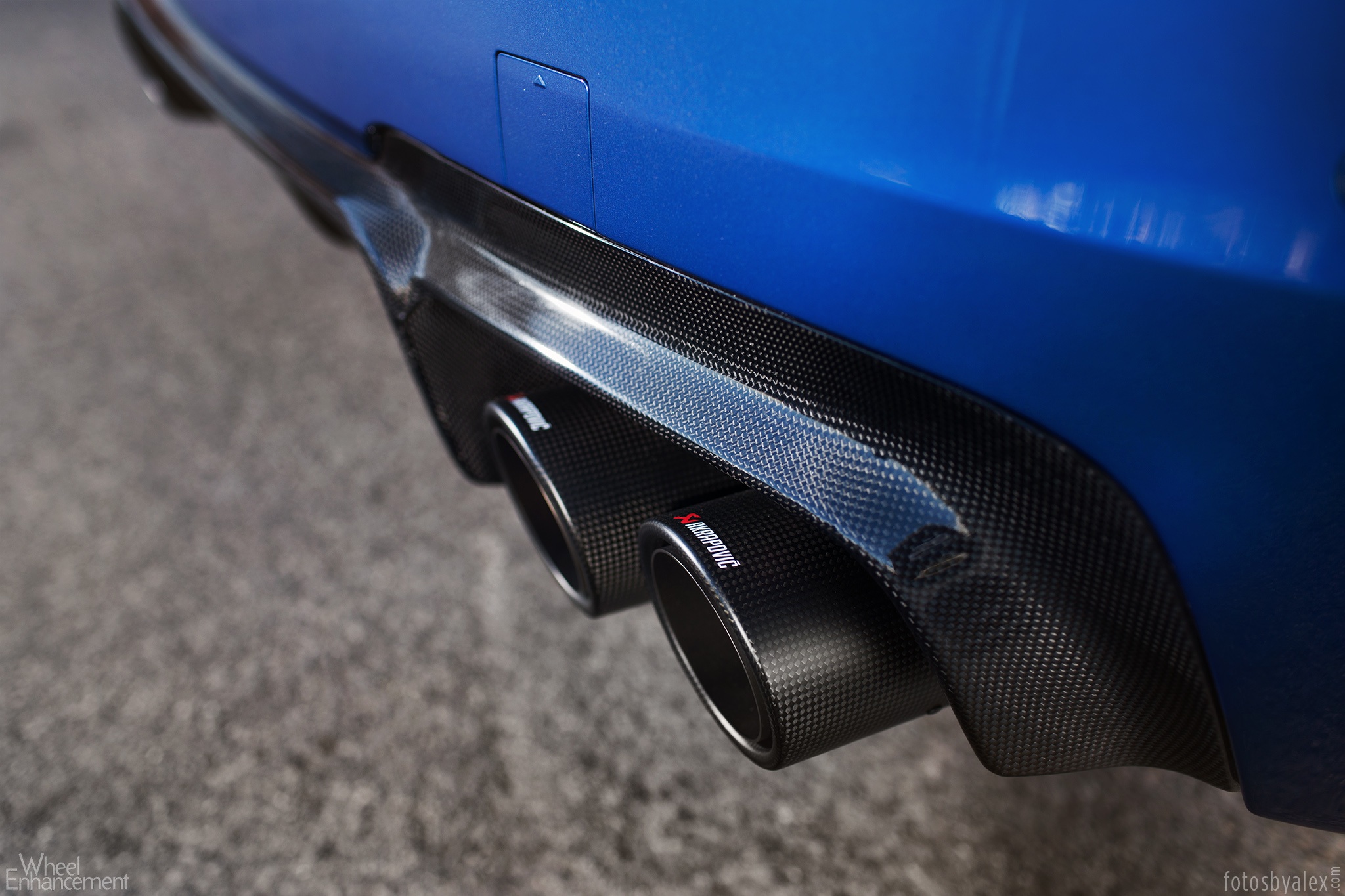 今天帶給各位的這部藍色塗裝BMW F10 M5則是在車主的決定下,添上些許高質感妝點,包含3D Design出品的碳纖維後下擾流板與後視鏡飾蓋、RKP碳纖維前下巴、iND黑色銘板與碳纖維後尾翼等部品,另外換裝Akrapovic鈦合金排氣管搭配AMS當派,讓這具V8渦輪增壓引擎能夠發出更兇猛的怒吼。除此之外,輪圈選用知名品牌HRE Performance Wheels出品、型號S101的21吋款式,整體搭配得宜。感謝攝影師Alex Stone所提供的精美照片。