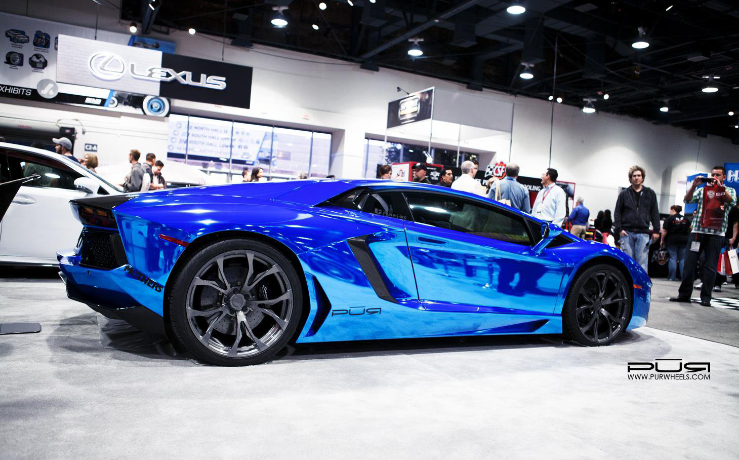 這部外觀施以電鍍藍色貼膜的Lamborghini Aventador LP700-4乃代表碳纖維廠商Seibon Carbon出席,輪圈使用知名品牌PUR Wheels出品、型號RS04的款式,圈面以亮面炭粉色塗裝,搭配耀眼的電鍍藍色車身,別具風味。Lamborghini Aventador LP700-4於2013年款式特別將碳纖維後引擎蓋納入選配清單中,選配價格大約台幣65萬元,另外包含前保桿進氣口周邊、側邊進氣口周邊、後下擾流板、前引擎蓋周邊飾板、後視鏡飾蓋與自動升起尾翼飾蓋等,都出現原廠選配所提供的碳纖維材質部品,而擅長於製造各種熱門改裝車適用之碳纖維部品的Seibon Carbon正在積極研發並且量產,提供先前交車、尚未選配到原廠碳纖維部品的Lamborghini Aventador LP700-4選購,也替這些車主省下一些預算。