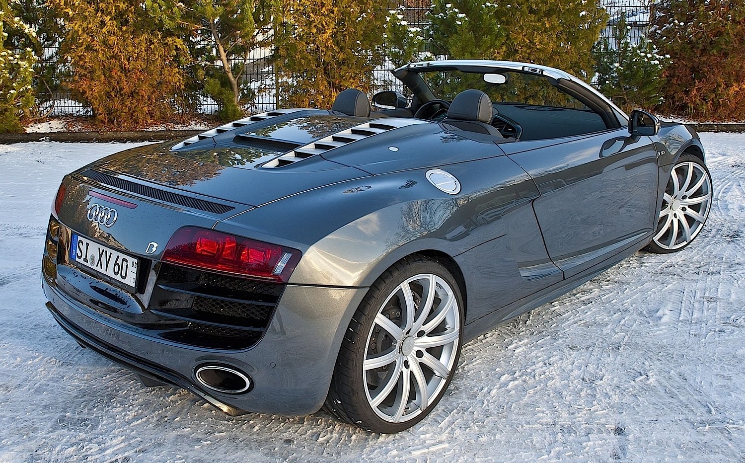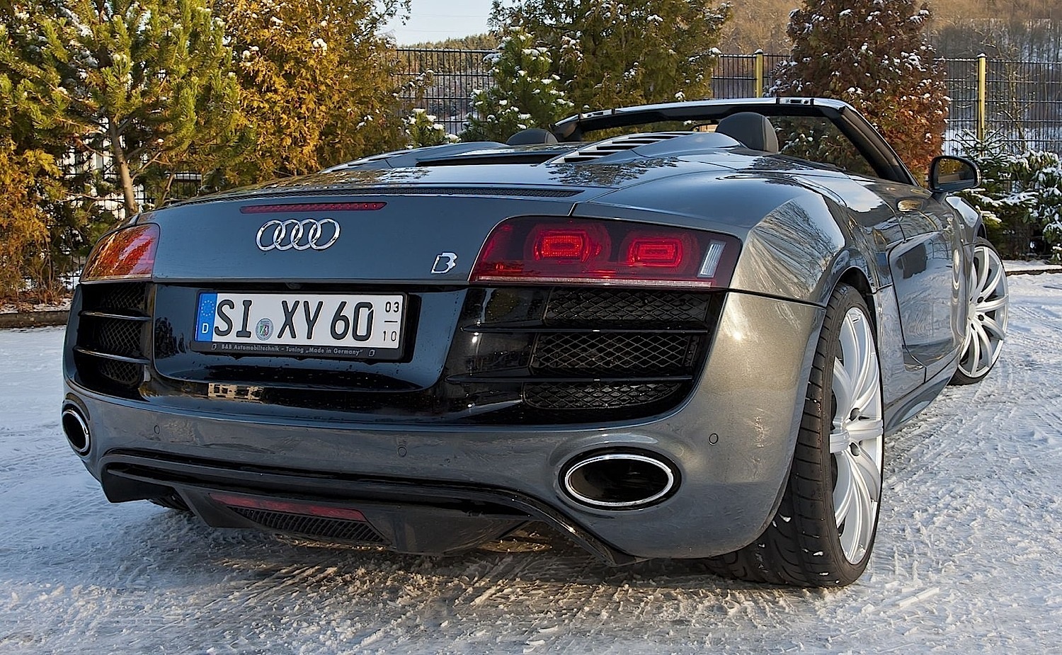 德國改裝廠B&B Automobiltechnik針對Audi超級跑車R8 V10推出動力提升套件,以眼前這部Audi R8 V10 Spyder為基礎,透過碳纖維進氣系統、量身訂做的高性能排氣管與電腦程式的更新,將5.2升V10自然進氣引擎提升至628HP,扭力峰值增強至59.7kgm,以維持自然進氣的情況下來說,進步幅度相當明顯。