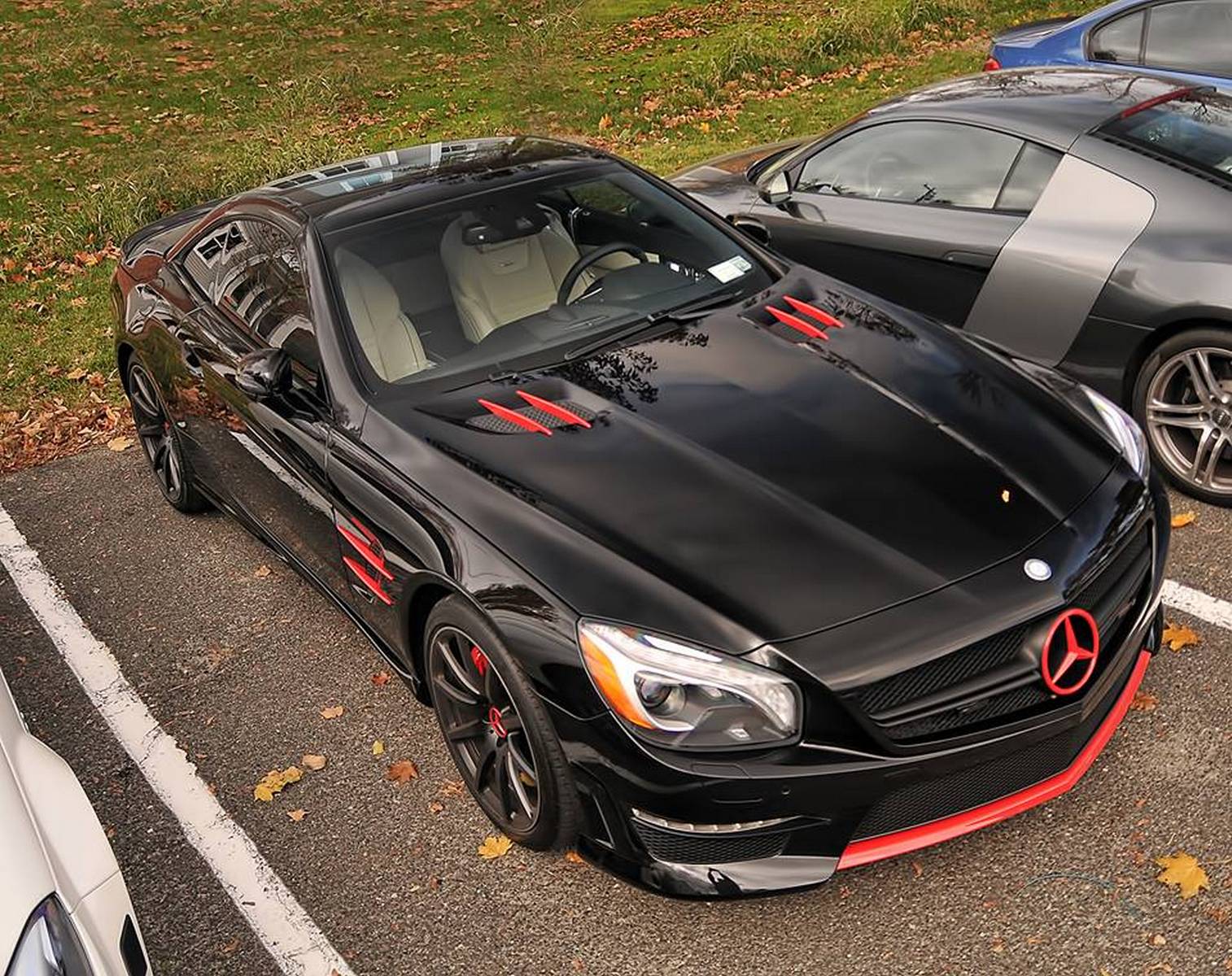 Mercedes SL63 AMG本身就不是一輛設計來在道路上巡弋的跑車,在奢華程度以及流暢性也不若Ferrari California等等的超級跑車來得愜意,但那些本來就不是她所追求的,就像許多AMG設計的初衷一般,她極端的動力以及怒吼總是能夠令整條街道熱血沸騰,也總是能在一出現時就拿下頭條。 在以下的圖片故事中我們可以看到這輛SL 63一點都不一般,也許一般版本的SL就已經非常引人注目了,何況今天是SL 63,且是精心改裝過後的成果,其最大的魅力就屬動力之提升,那一套” Performance Package”將使其動力擁有長足提昇,5.5升V-8引擎將壓榨出564hp最大馬力,其實恐怖的是她663 pound-feet的扭力值,相較於Ferrari California的372 pound-feet就可以比較出這輛Mercedes SL63 AMG的可怕之處。