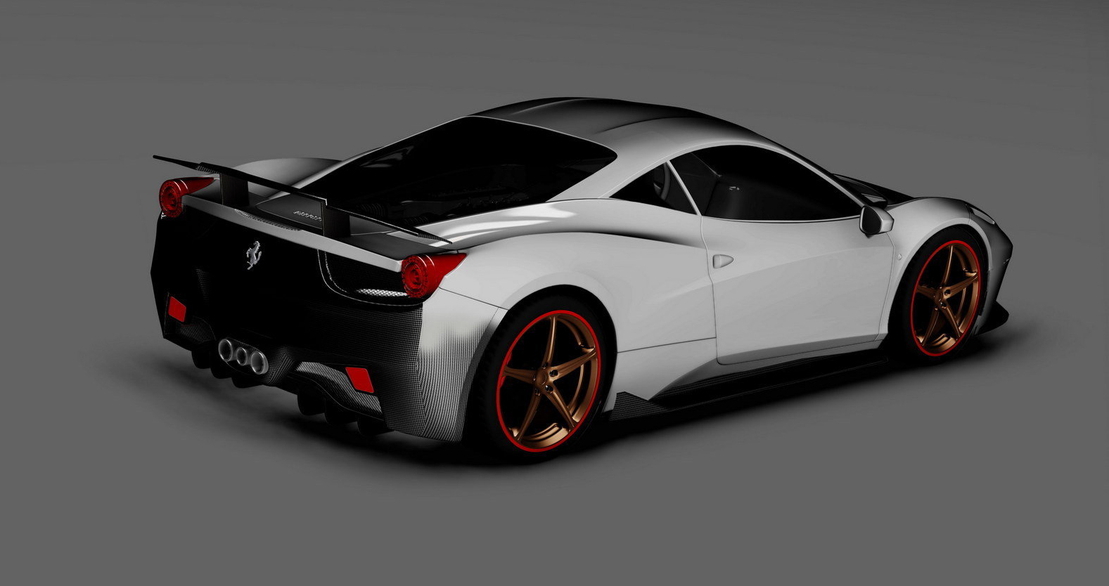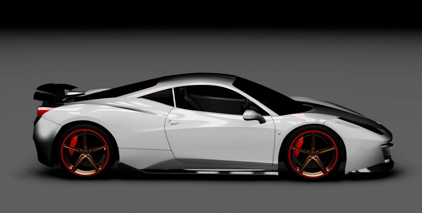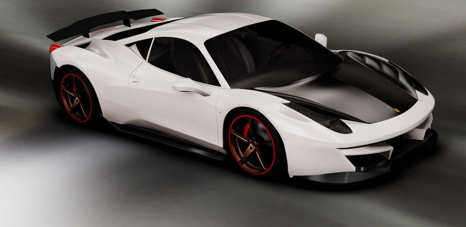 知名改裝廠DMC對外公佈了他們替Ferrari 458 Italia所設計的全新空力套件,預計僅會限量生產10組,而根據消息指出,目前他們正在日本東京(Tokyo, Japan)著手進行第一組套件的安裝。由官方所公佈的這些照片看得出來,DMC所設計的前保桿包含了大型進氣孔,除了因為碳纖維材質而達到輕量化的目的外,對於車頭下壓力與煞車冷卻效率也有一定程度的助益。此外,向地面延伸的側裙營造出不同於原廠的側面視覺效果,車尾後方、全新設計的大型碳纖維擾流尾翼與引擎蓋同樣格外引人注目。