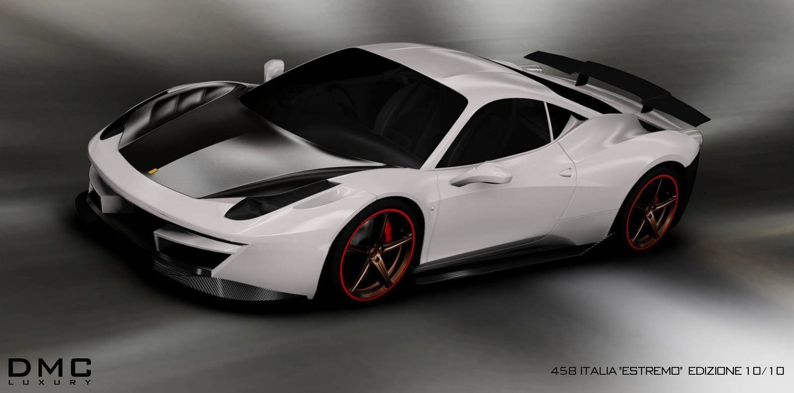 這間以精品業自居的改裝廠將這部Ferrari 458 Italia取名DMC 458 Ferrari Estremo Edizione 10/10,全球限量十部的稀有性顯見於言表。另外,DMC表示這款碳纖維空力套件將會使Ferrari 458 Italia的車重降低約60kg,對於操控性將有明顯幫助。動力部分,除非顧客特別指定選購升級方案,成車販售的DMC 458 Ferrari Estremo Edizione 10/10將一律採用原廠設定,也就是搭載4.5升V8自然進氣引擎、最大馬力570HP的配置。