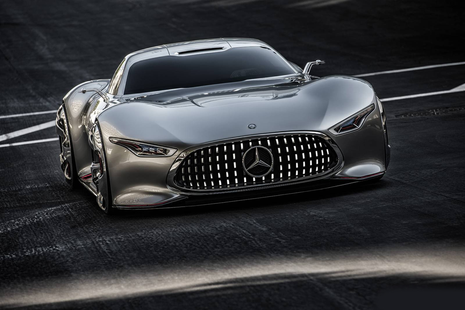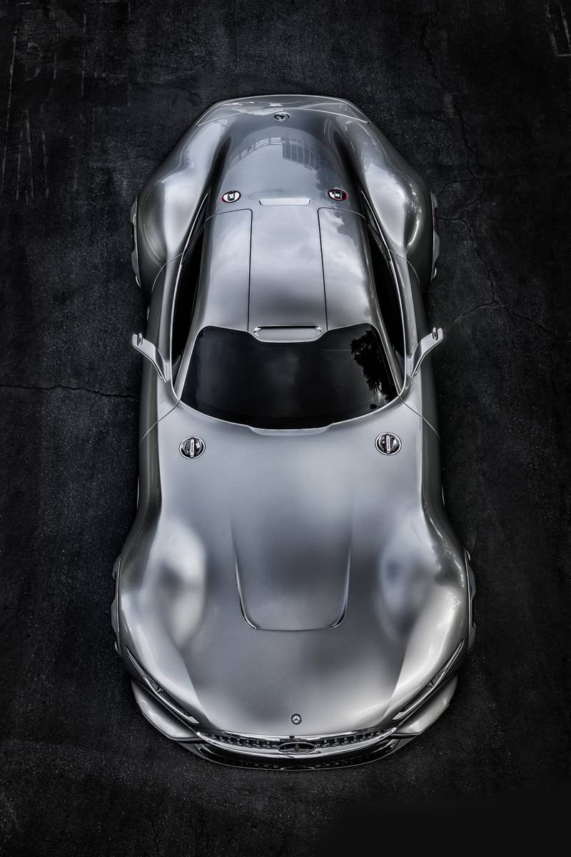 究竟這輛車是怎麼樣個概念?實際上就是以外觀為思考重點,Mercedes以"極端"來形容其設計主旨,超長的車頭以及短距的車室,搭配極速下墜的車尾,使其外觀呈流線的極致,其實這樣的車體正是在向1952 Mercedes-Benz 300 SL賽車致敬。內裝則使用紅色跑車座椅,車門採歐翼設定,中控台則以駕駛座為中心與駕駛者視線完全平行,方向盤則是純跑車設定。 很自然的,這輛車以目前最先進的AMG V8中置引擎為基準打造,最大馬力為585 hp、扭力則為800 Nm,車架材質為鋁合金材質,重量壓在1,385 kg以下,每一匹馬力僅須乘載2.4kg,制動系統採AMG高效能陶瓷大盤。相當有趣的是,她的車尾排氣管出口多達八個,極度激進的設計,相當期待她量產的那一天。