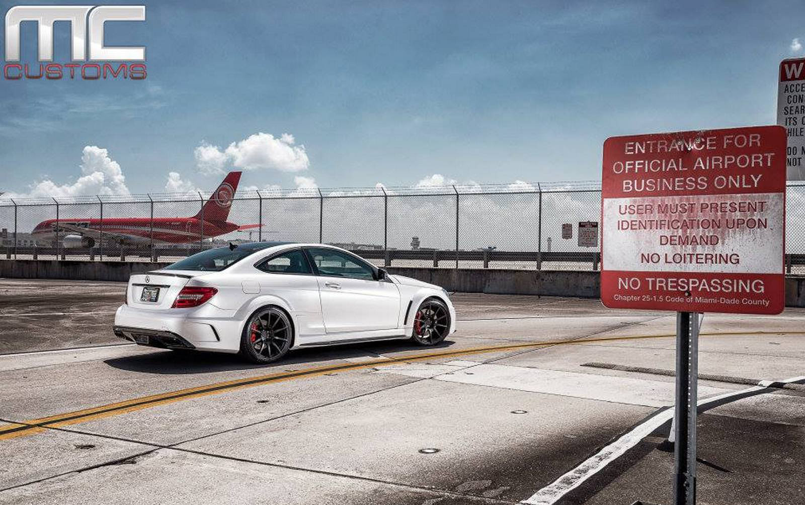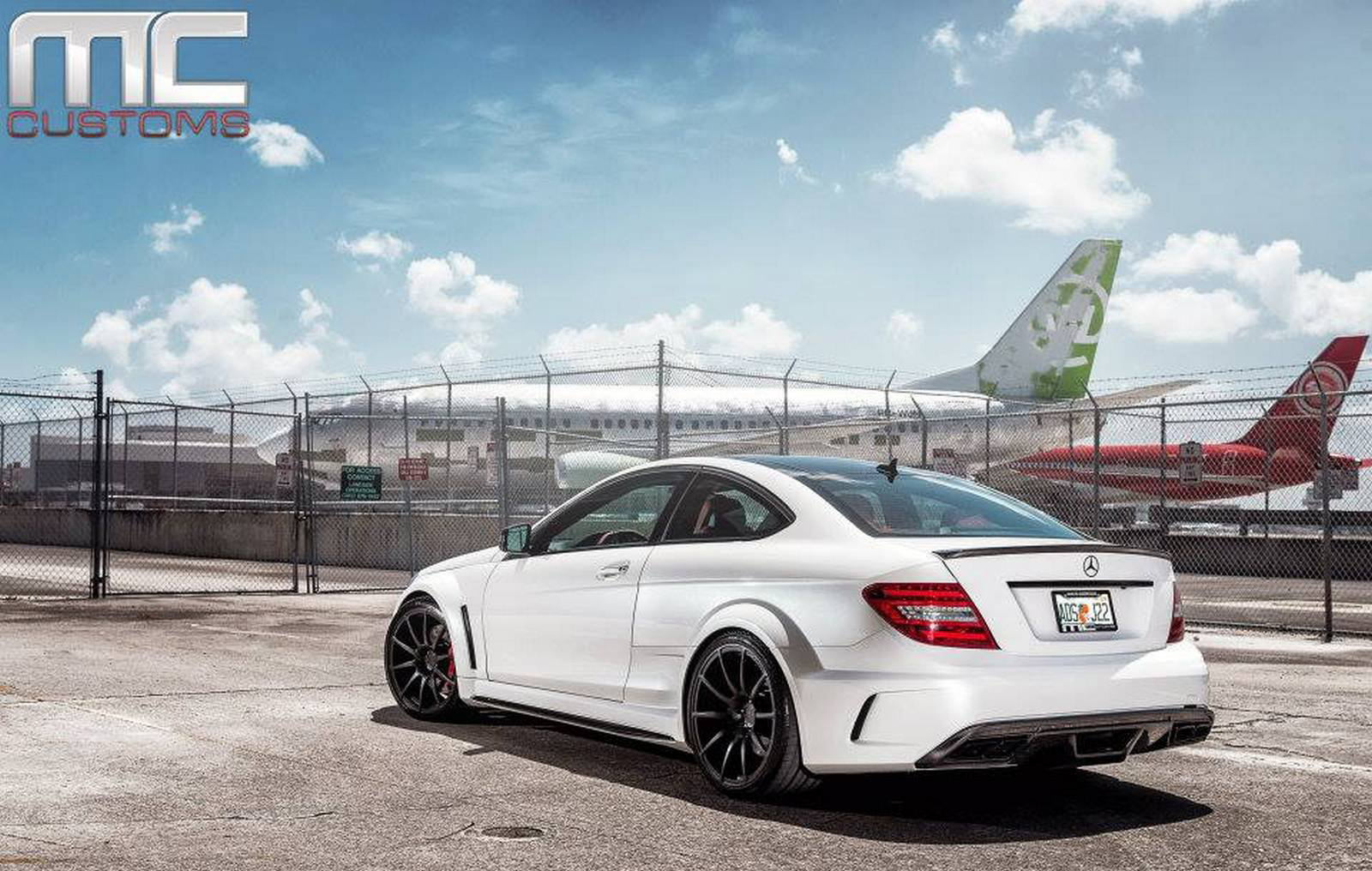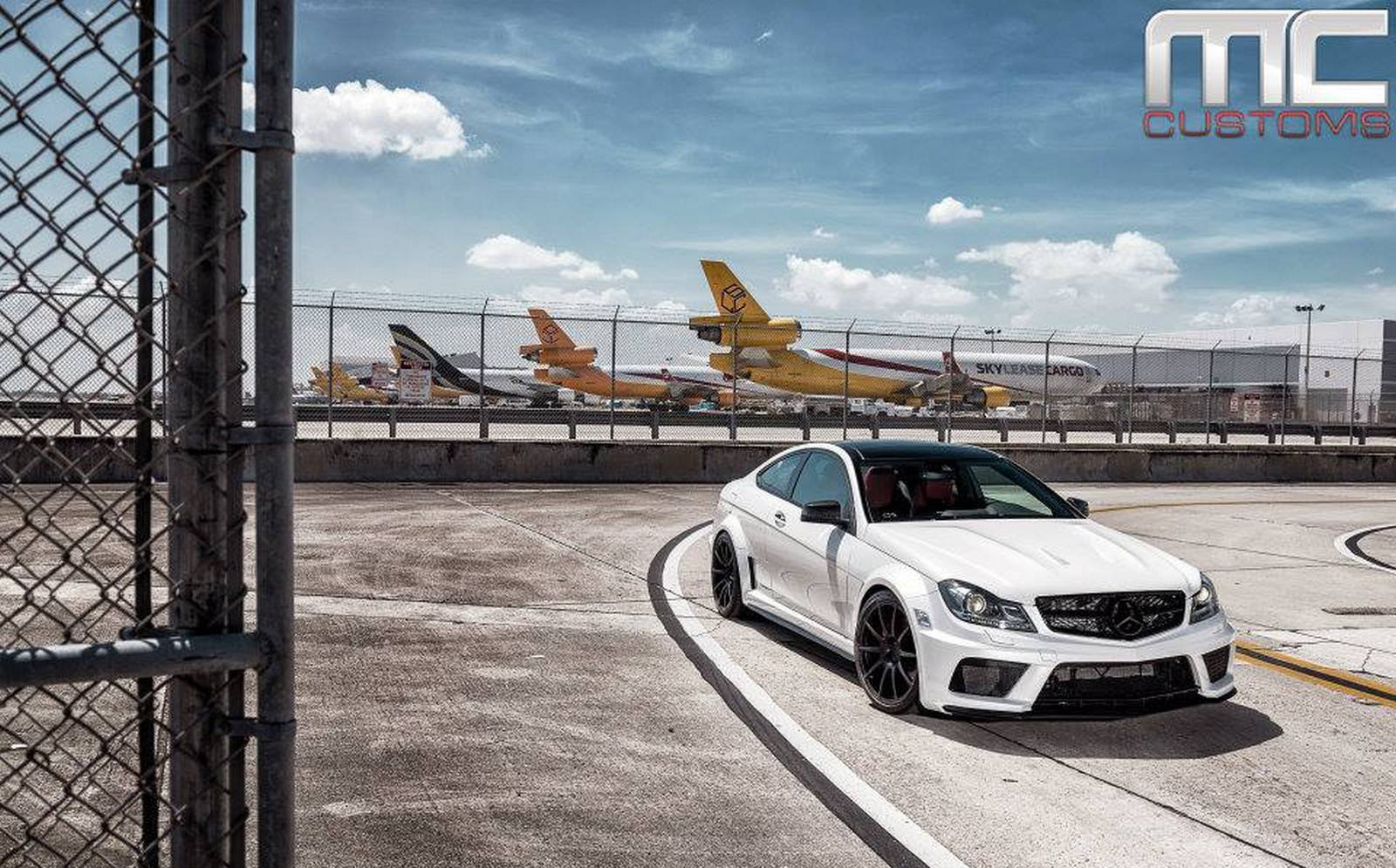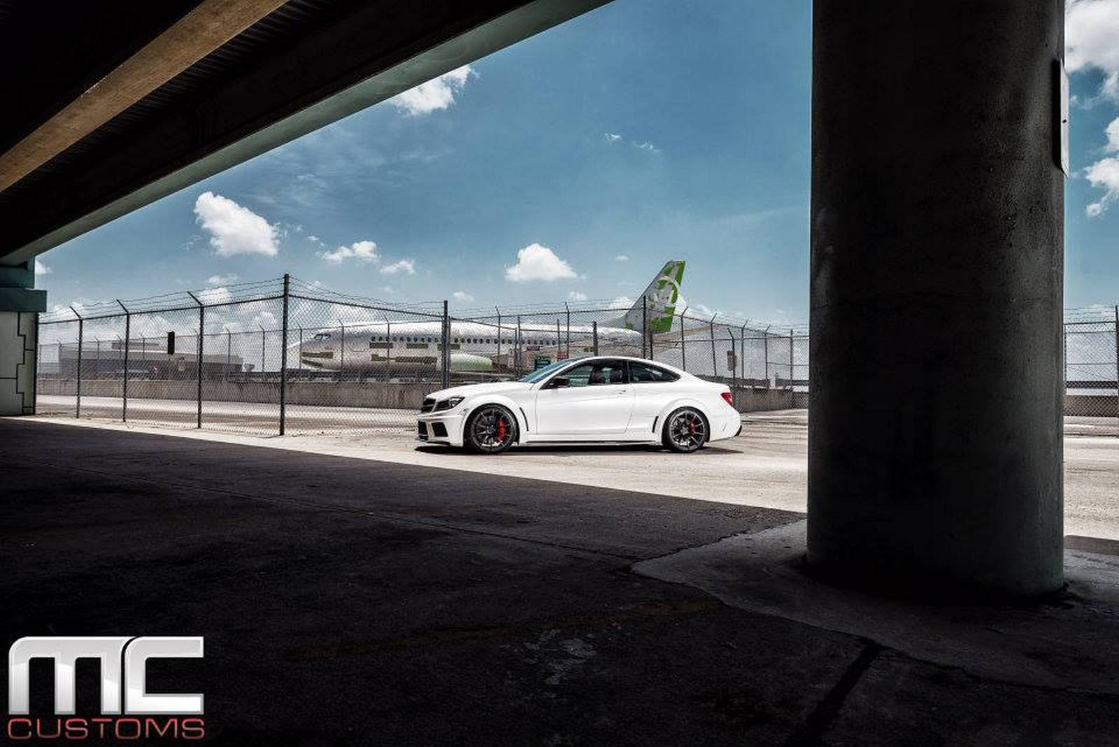 今天要帶給各位的是由改裝廠MC Customs所操刀改裝的Mercedes Benz C63 AMG Black Series,用上名廠Mode Carbon所生產的碳纖維空力配件,包含重新設計的後下擾流板與後鴨尾翼等,另外選用Rennen鍛造輪圈並且透過避震器的換裝將車身降低、凸顯爆龜輪弧的魅力。