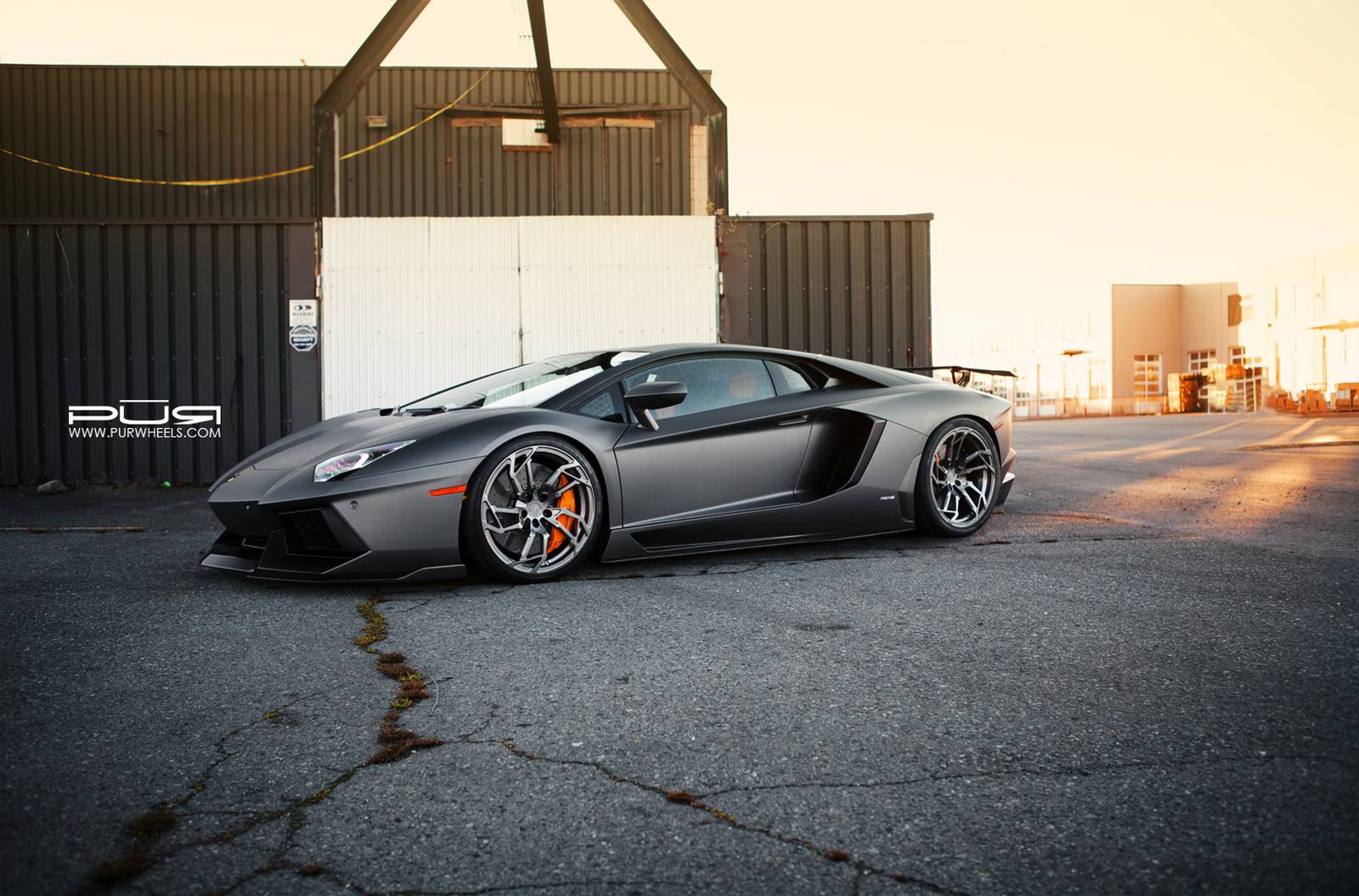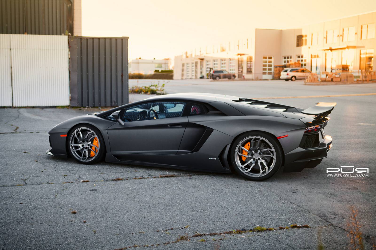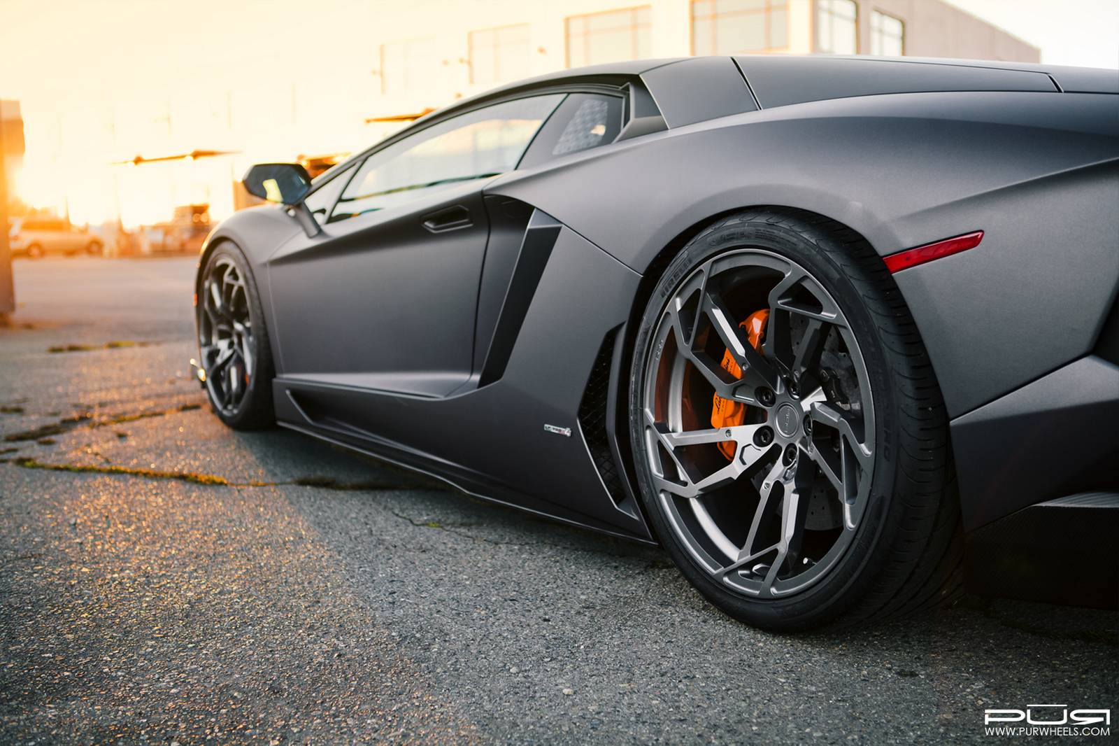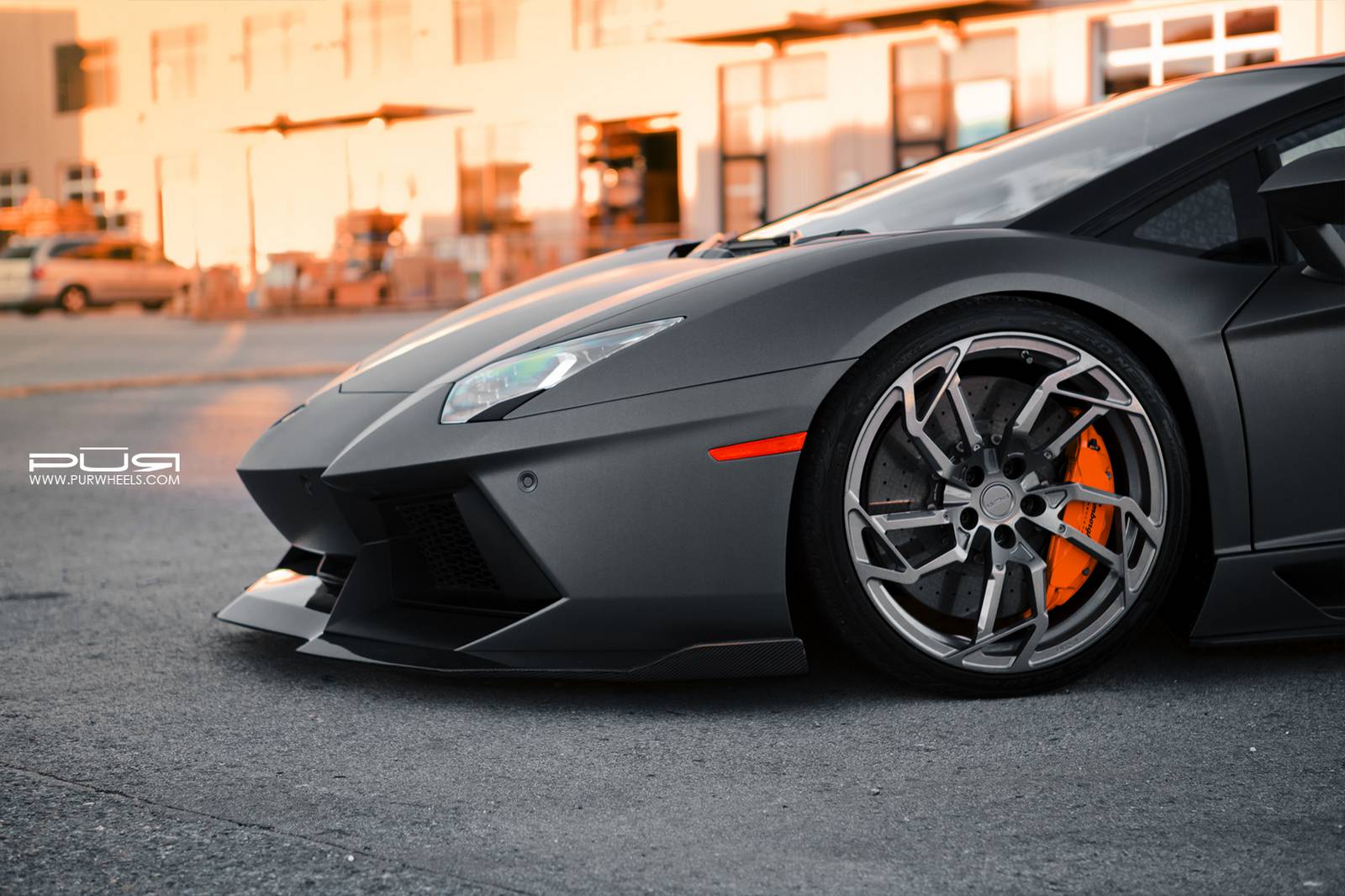 前陣子,知名品牌PUR Wheels跨出原本的輪圈領域、設計出專屬於Lamborghini Aventador LP700-4的空力套件,如今他們更推出最新款式的輪圈,同時呈現在各位眼前所見的這部消光鐵灰色塗裝的Lamborghini Aventador身上。