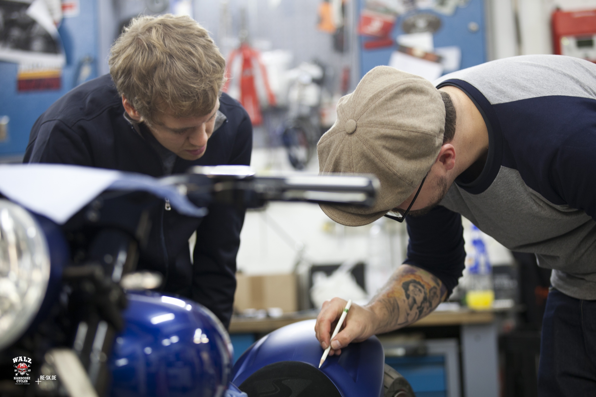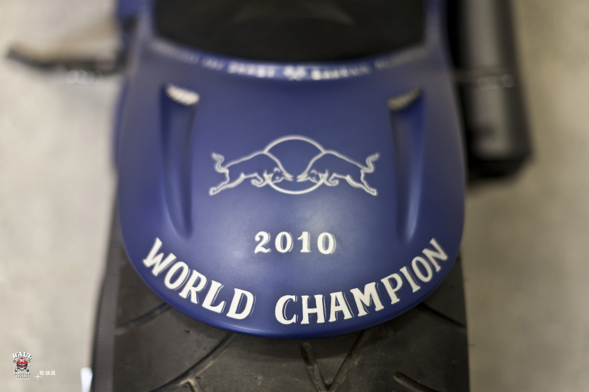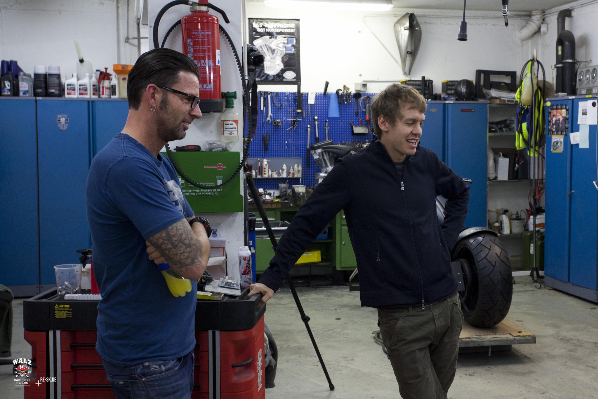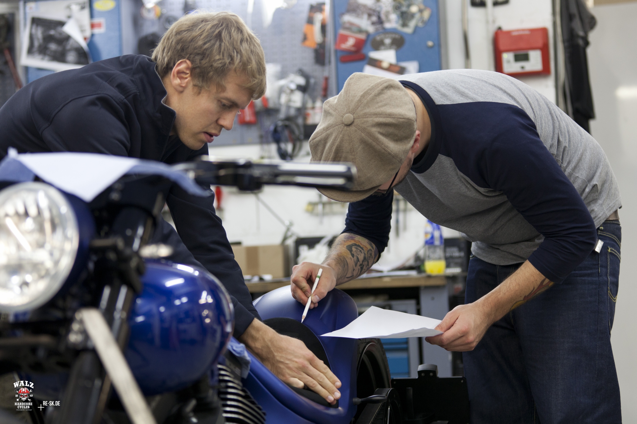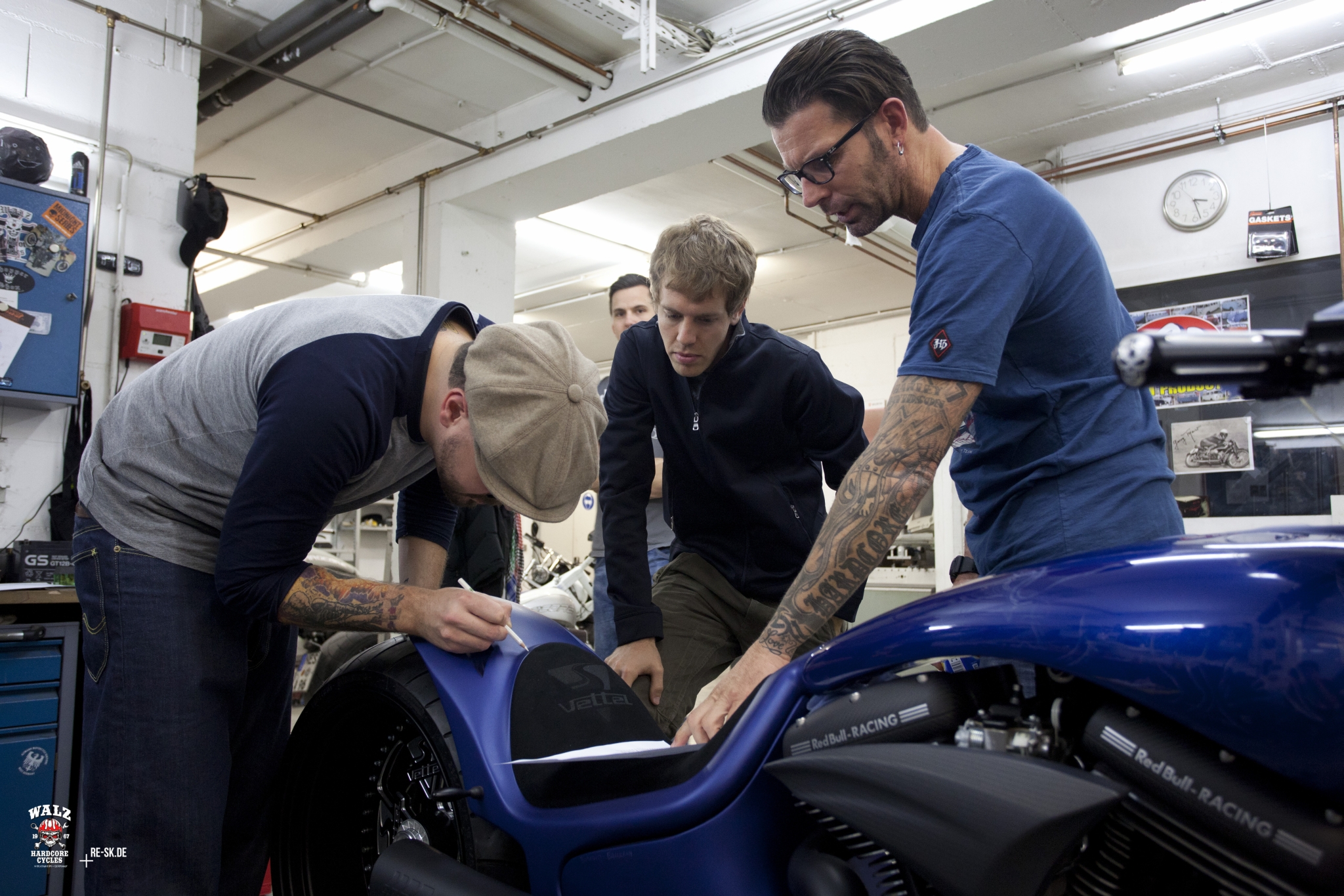 脫掉賽車服的Sebastian Vettel平日以BMW E90 320d柴油車款代步,雙門車款則是有一部Mercedes Benz SL65 AMG Black Series,平常以標準速度巡航於城鎮間,真的需要熱血狂飆,他倒是可以盡情地揮灑於賽道中。然而,Sebastian Vettel對於重型機車卻有極為強烈的熱愛,在閒暇之餘都會騎著它們出門繞繞,眼前這部乃由德國知名手工車組裝大師Marcus Walz打造,輪圈鑲入Vettel字樣,車身貼有車隊Red Bull的圖騰、風格獨具,與各位分享。